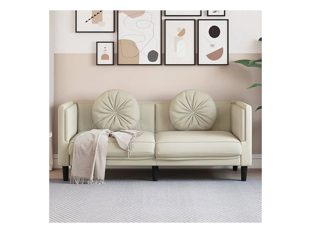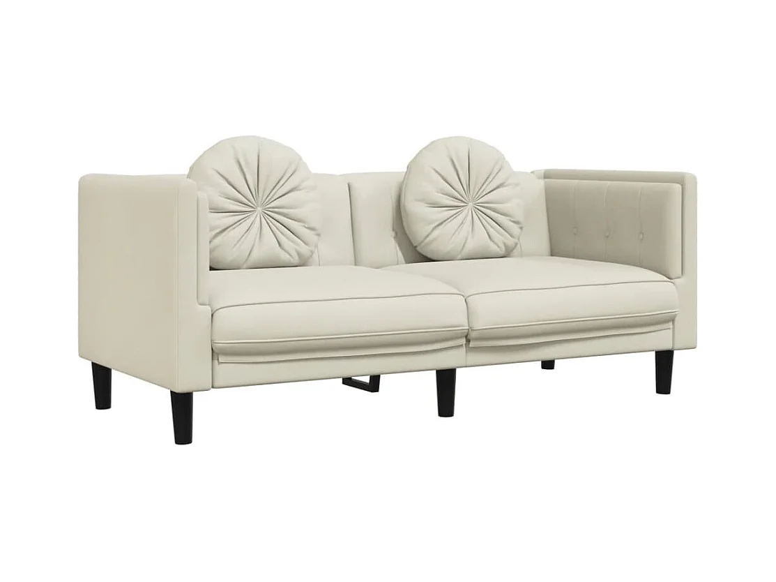 Canapé 2 places avec oreillers décoratifs crème 140 cm tissu REO14592