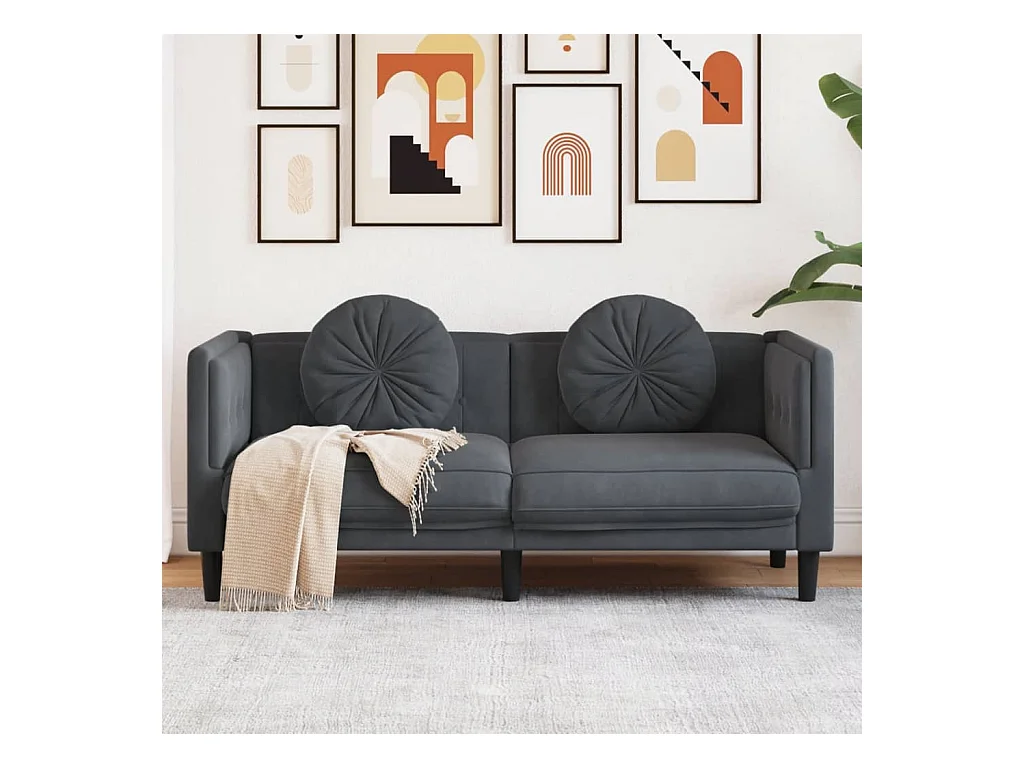 Canapé 2 places avec oreillers gris foncé 120 cm velours