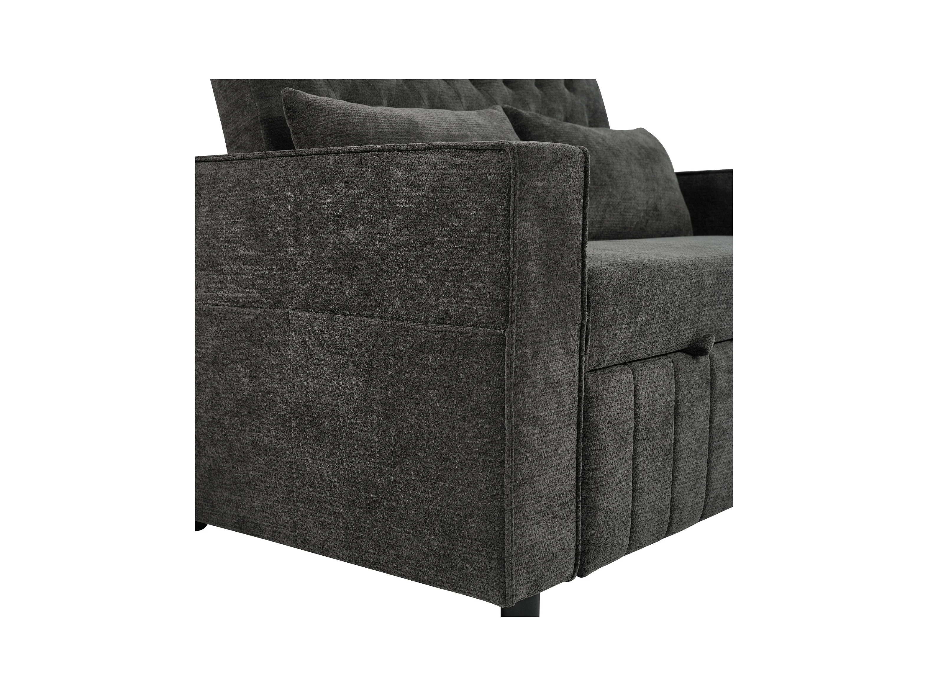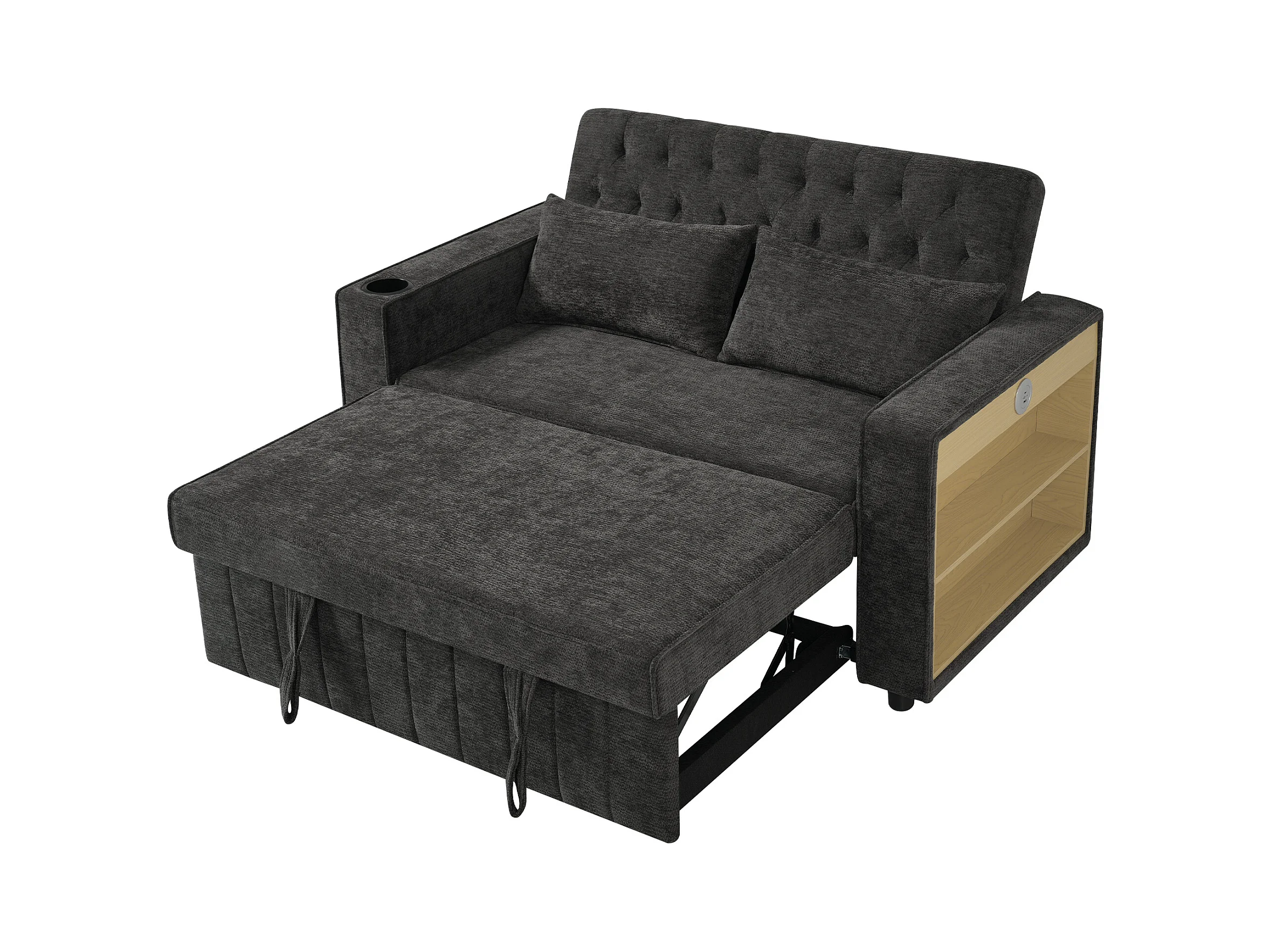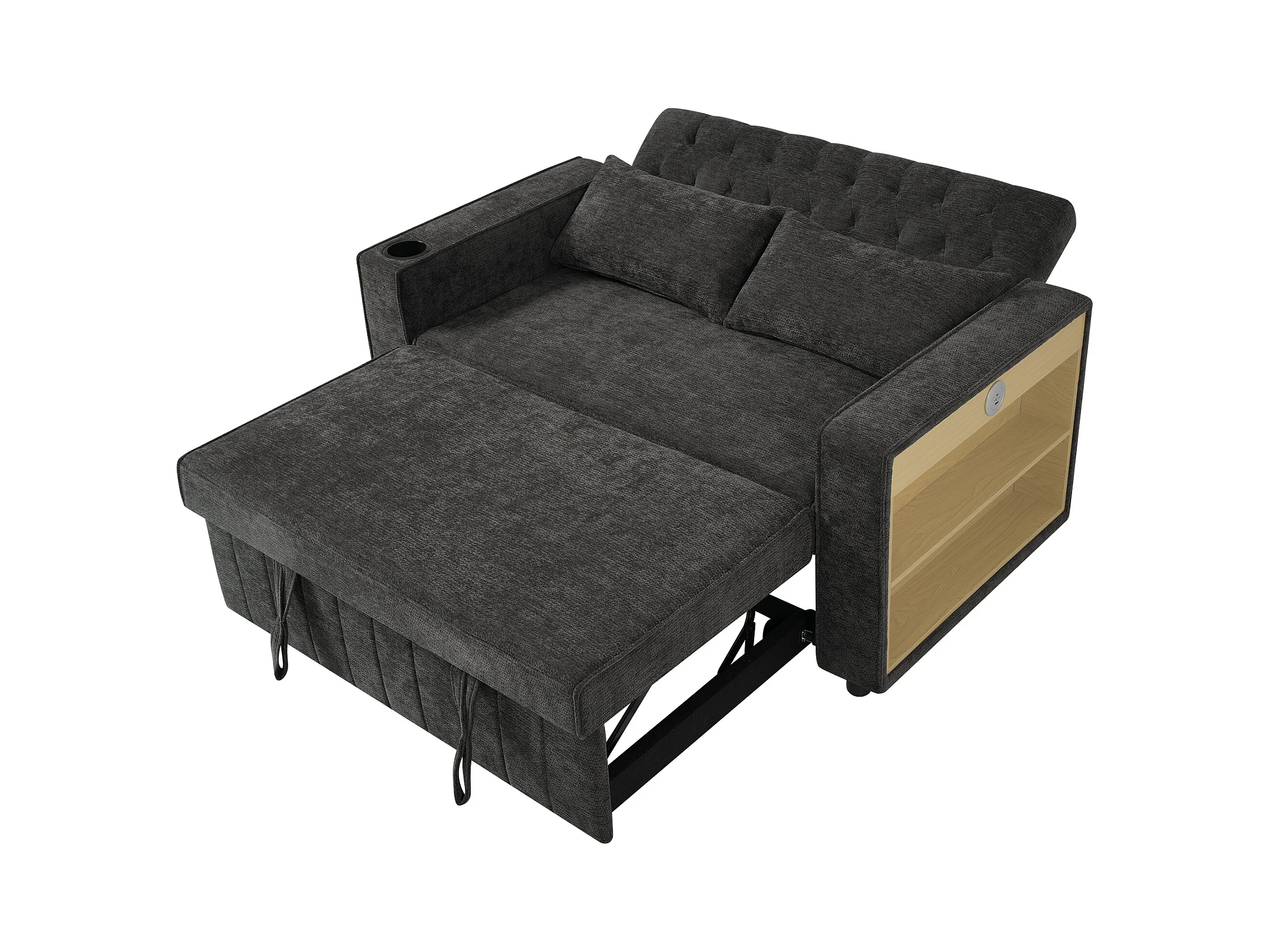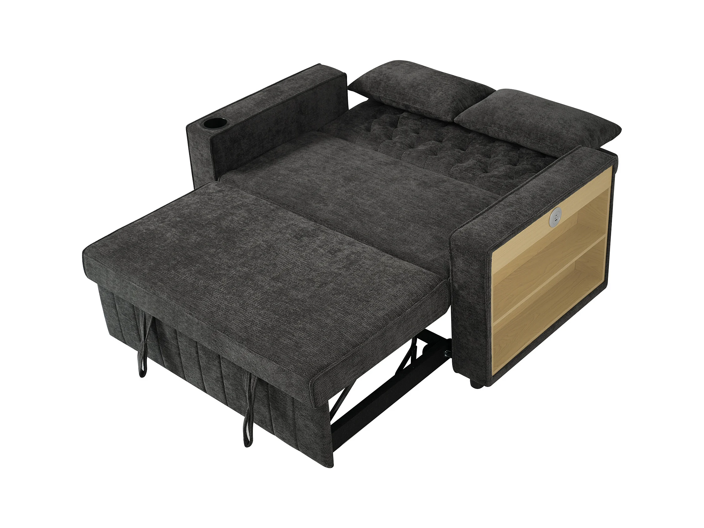 Canapé avec fonction gigogne - Canapé de salon avec porte-gobelet et port de charge USB - etagère de rangement - chenille gris