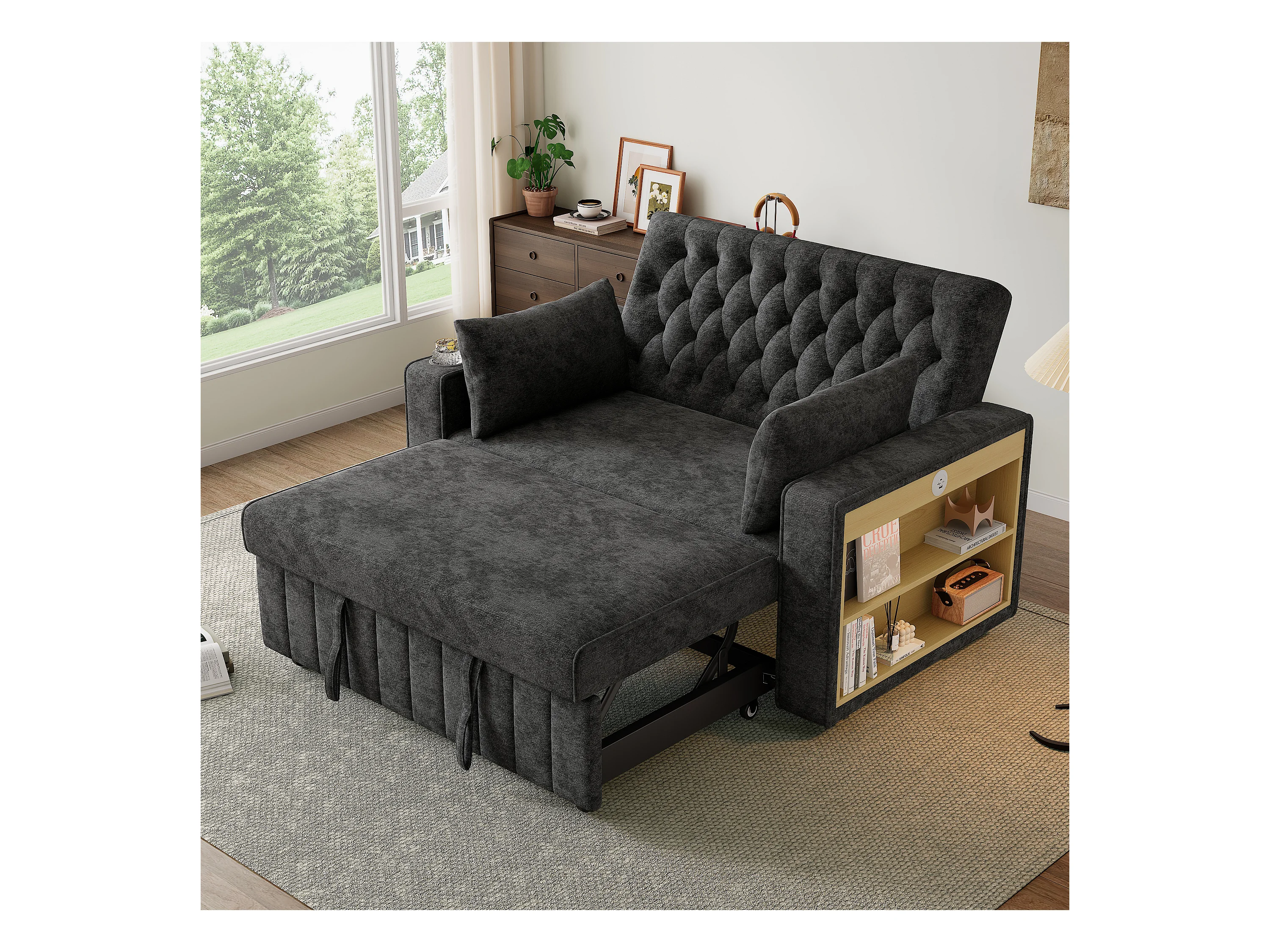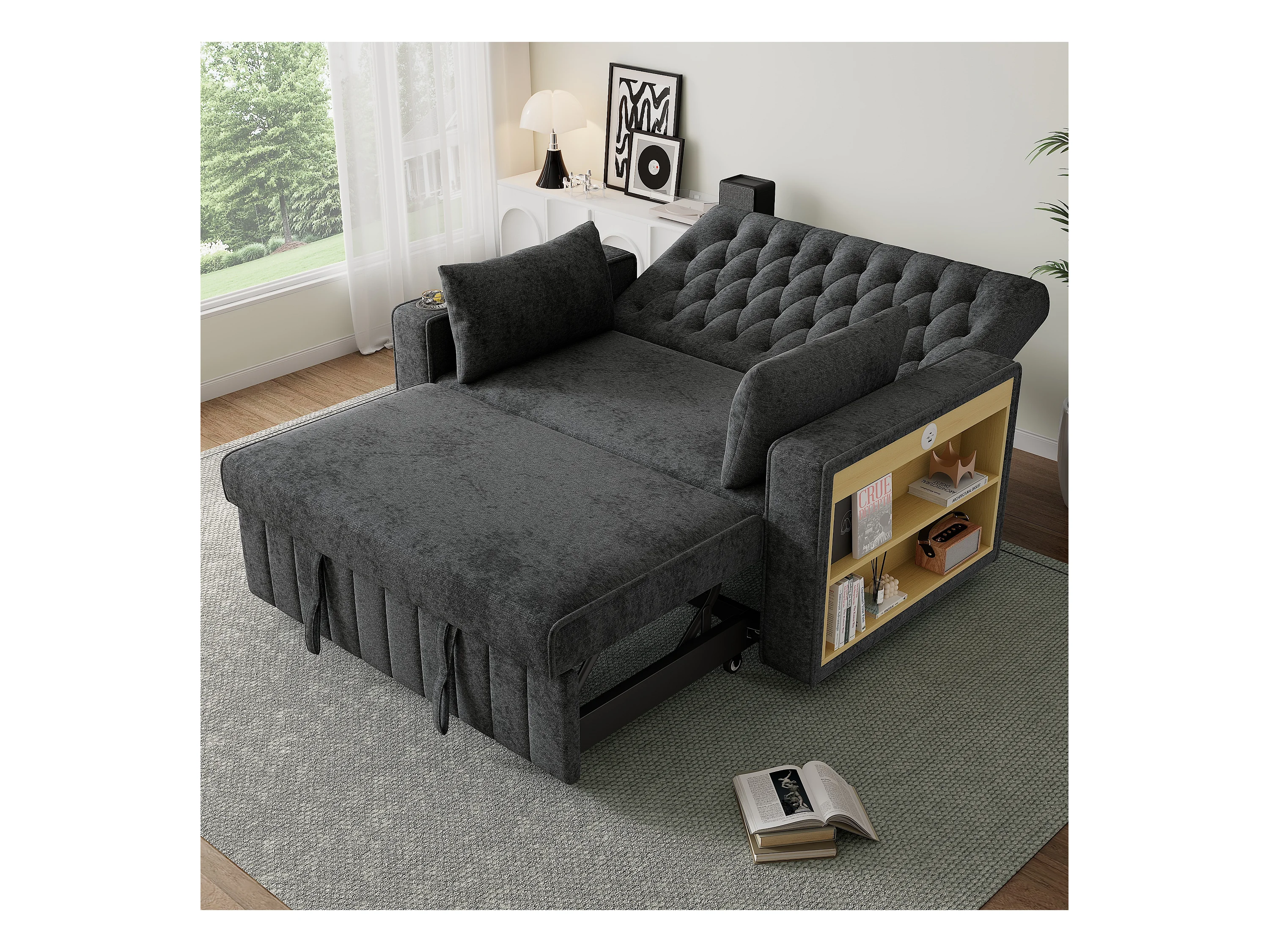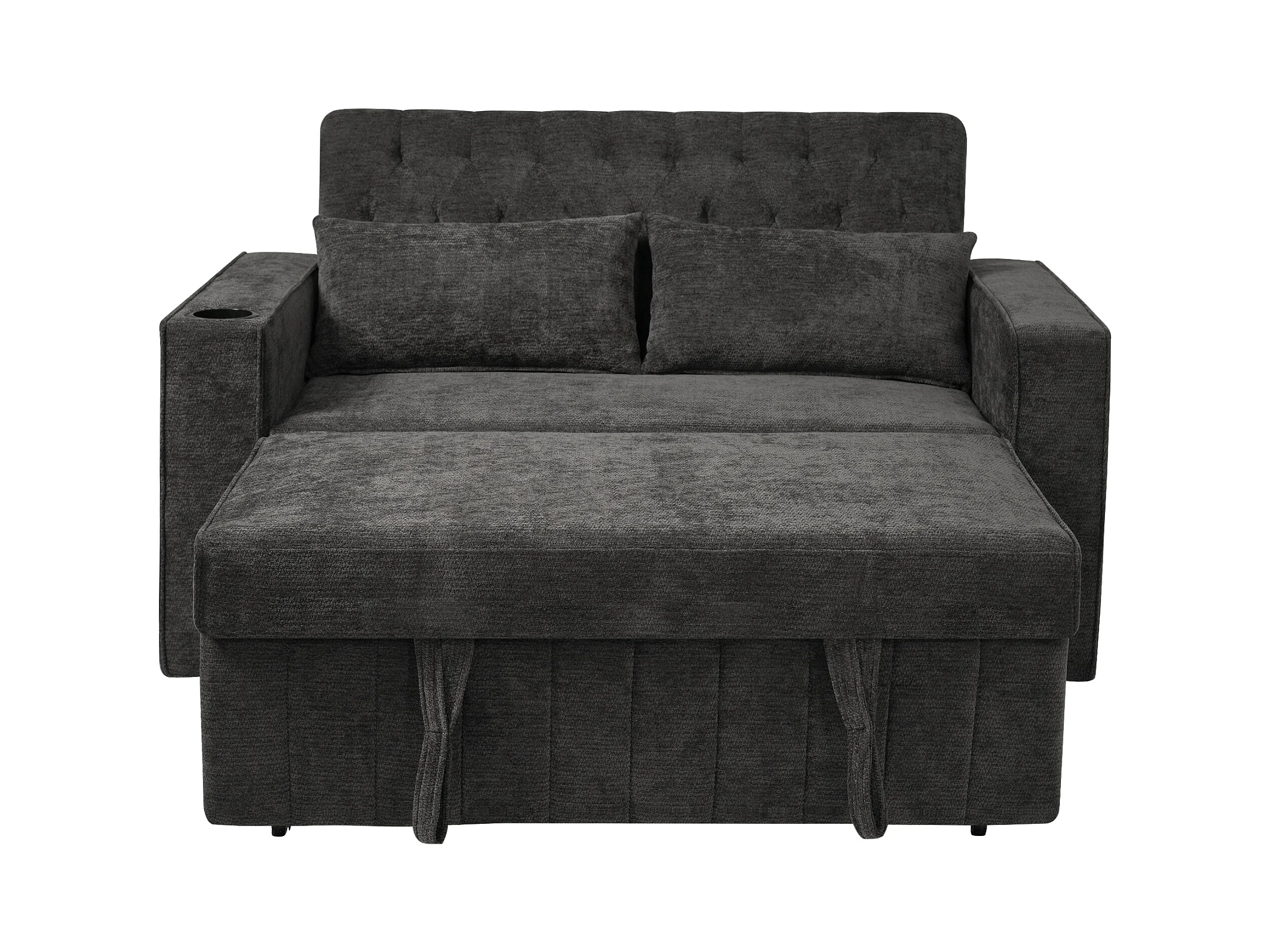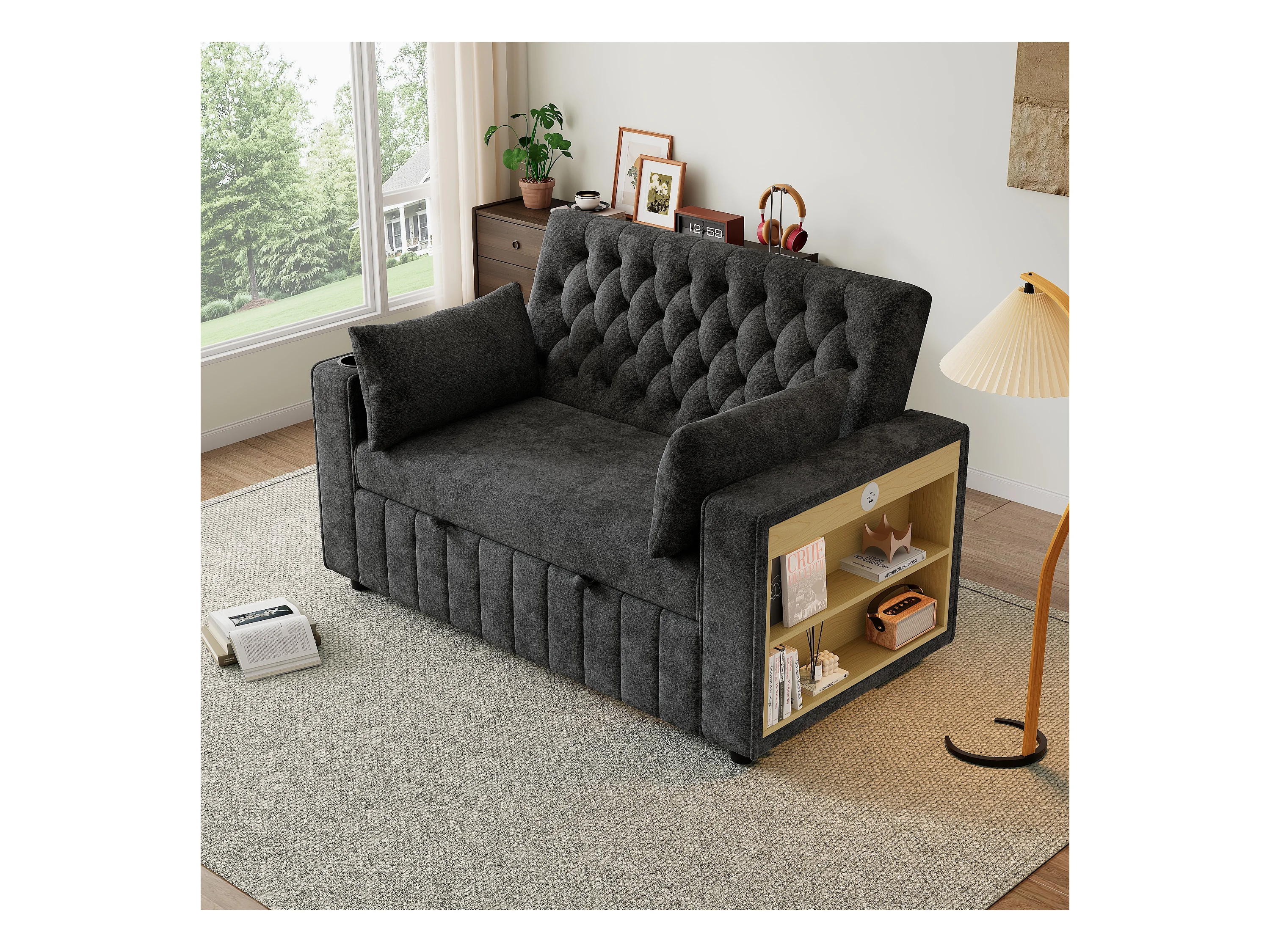 Canapé avec fonction gigogne - Canapé de salon avec porte-gobelet et port de charge USB - etagère de rangement - chenille gris
