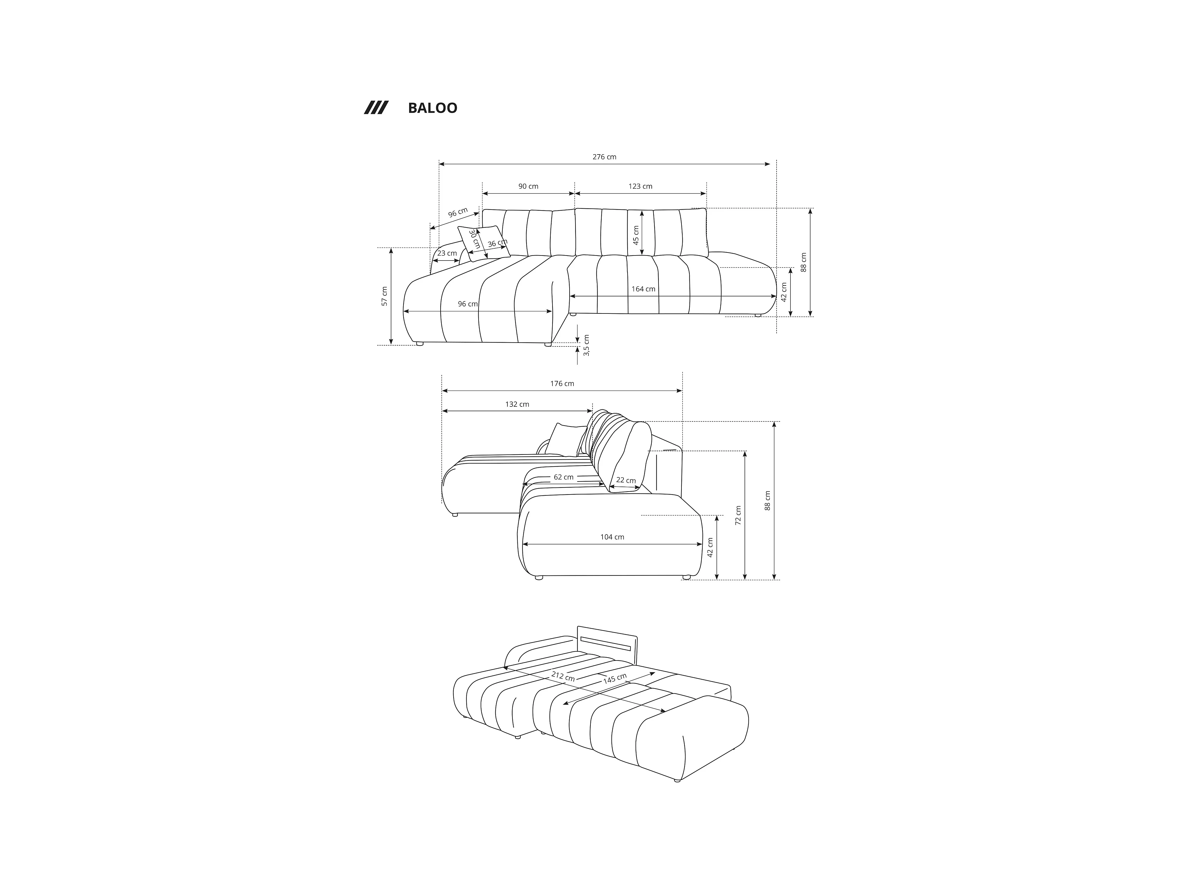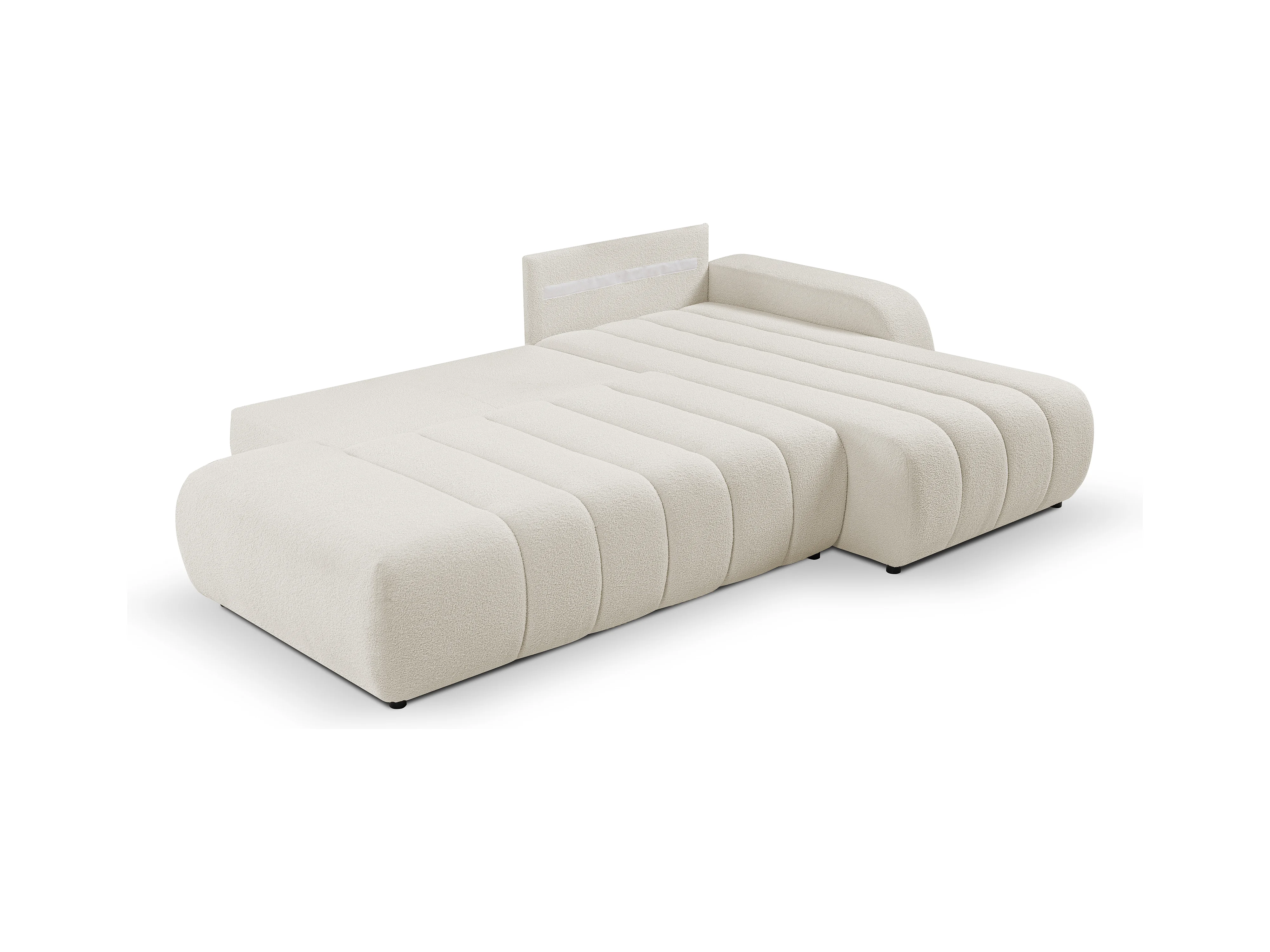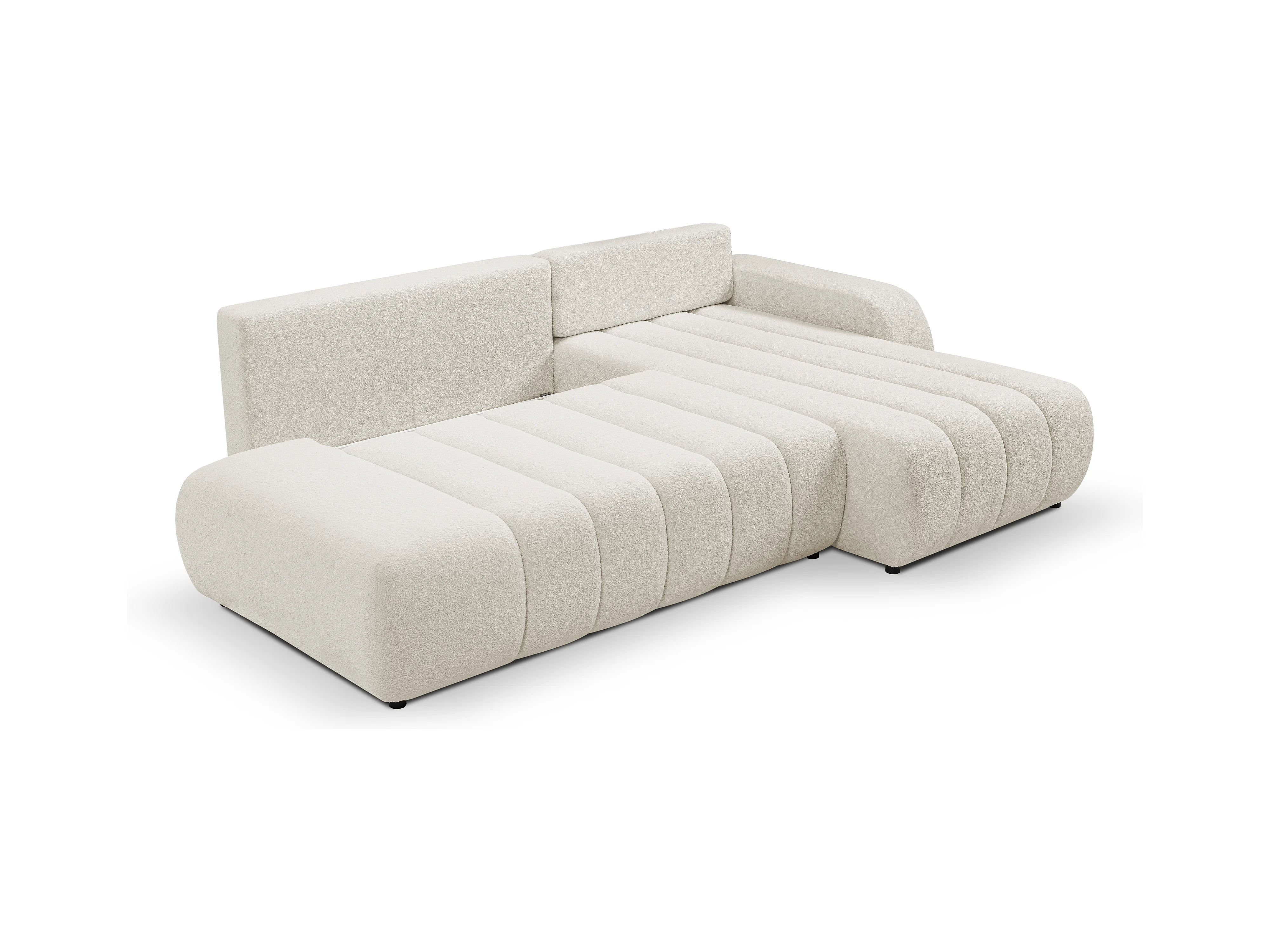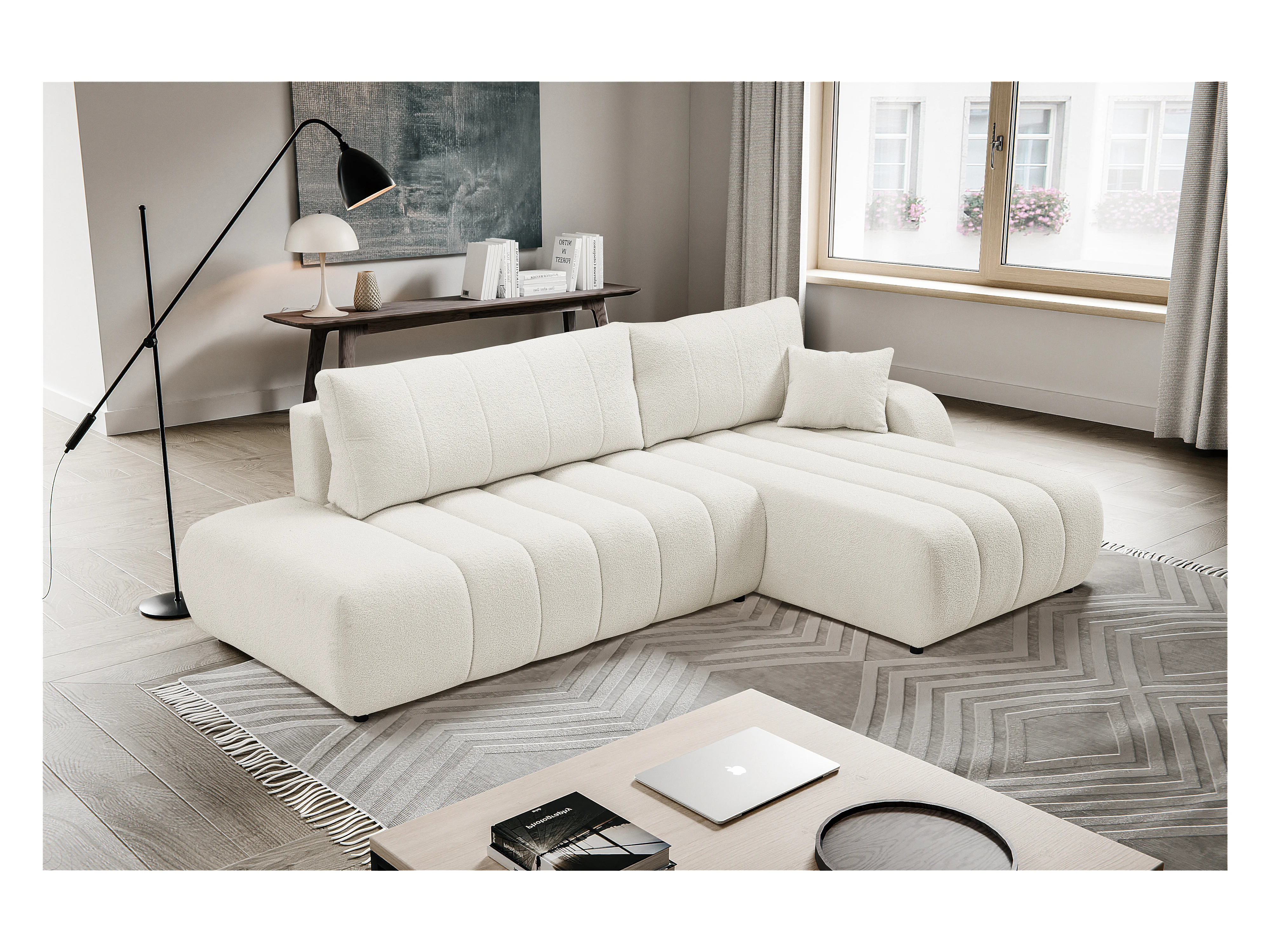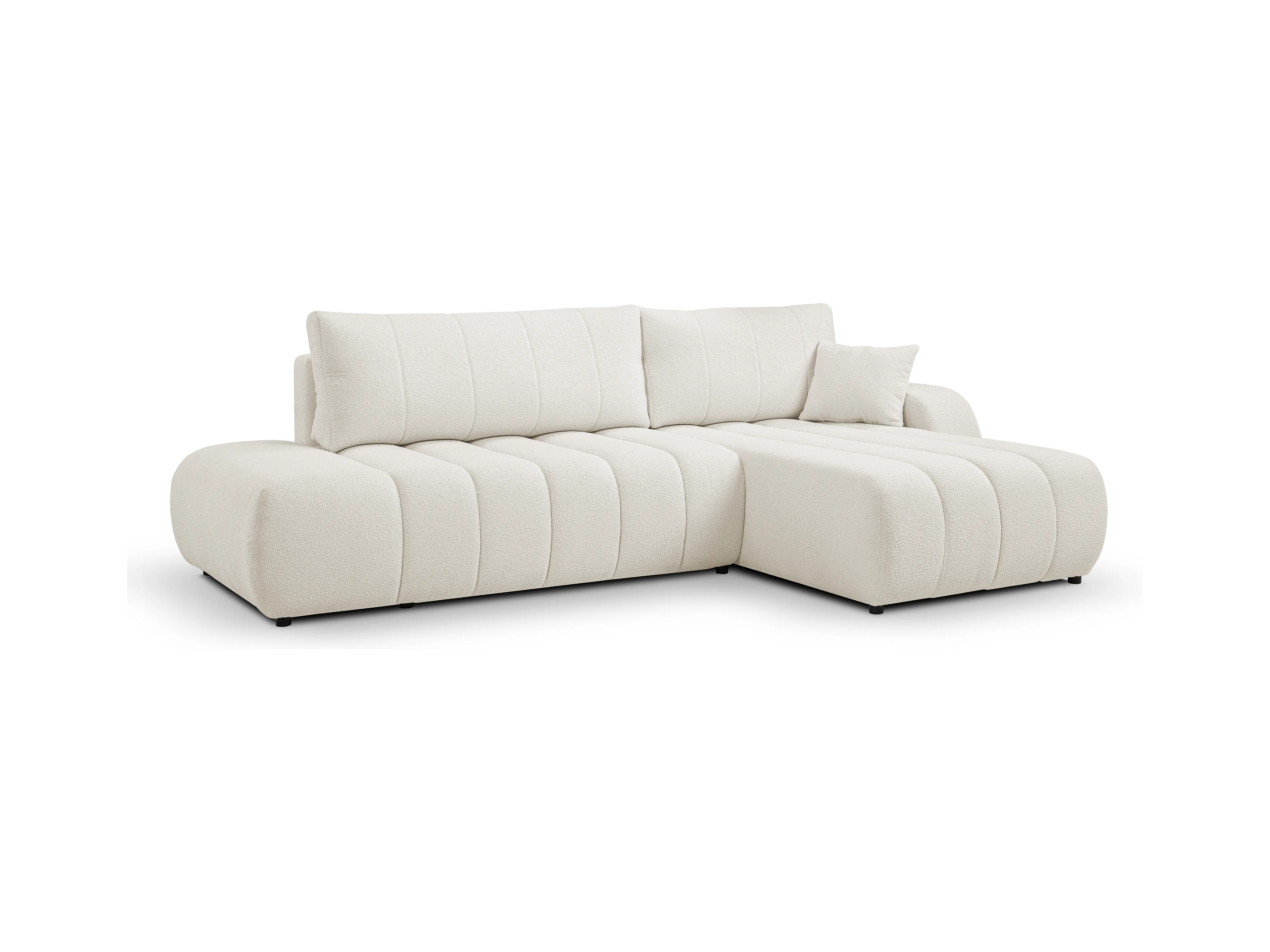 Canapé avec fonction lit et coffre de rangement, rembourrage confortable, tissu, coussins décoratifs, côté droit, 276x88x176 cm, blanc