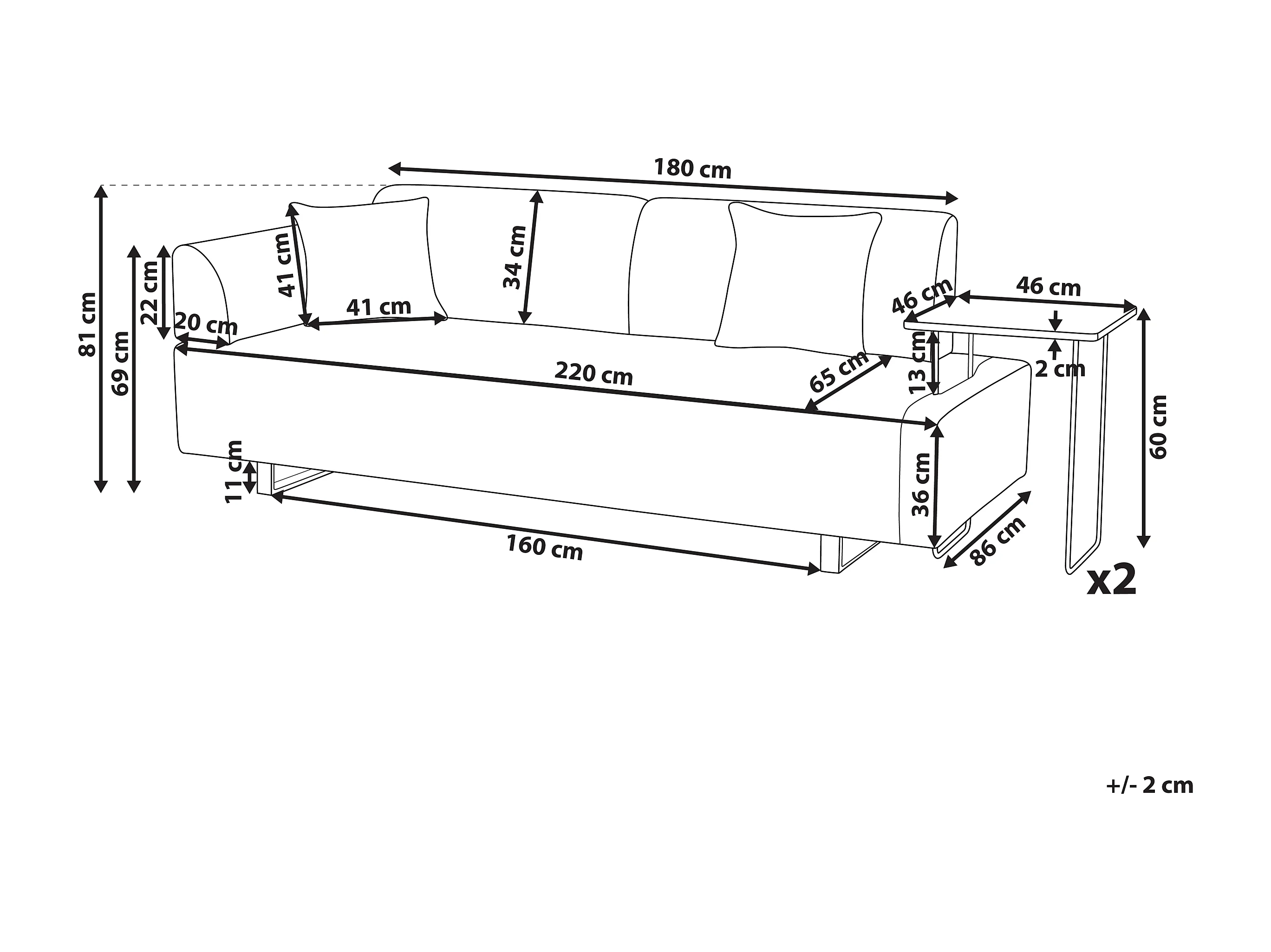 Canapé 3 places SOKNA Tissu Taupe avec tables