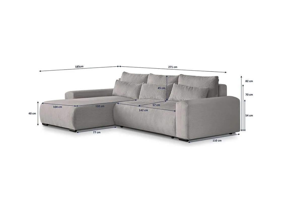 Canapé-lit ECKSCHLAFSOFA Draco L Gris