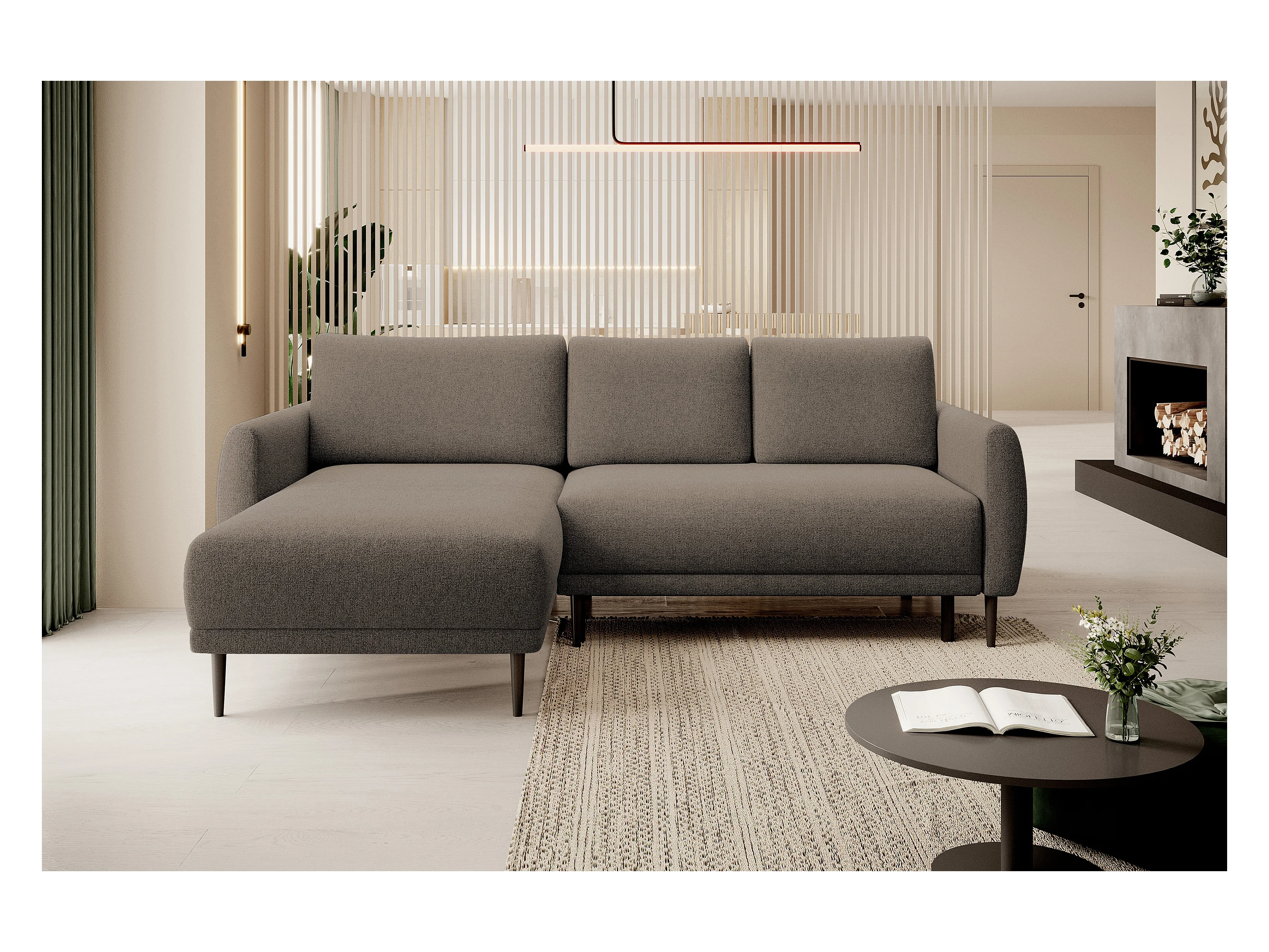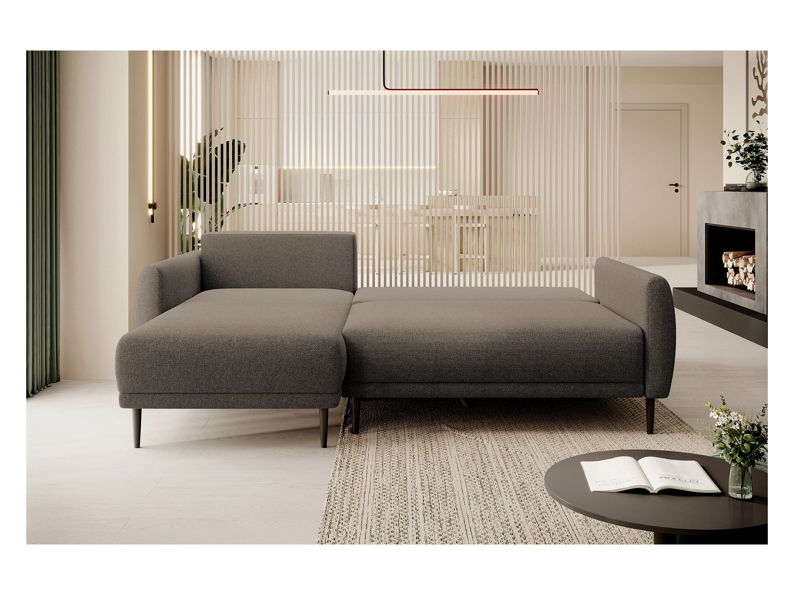 Canapé RAVEN L avec fonction de couchage, compartiment à literie, indépendant, rembourré avec têtières réglables 257x198x96 cm Côté gauche Marron