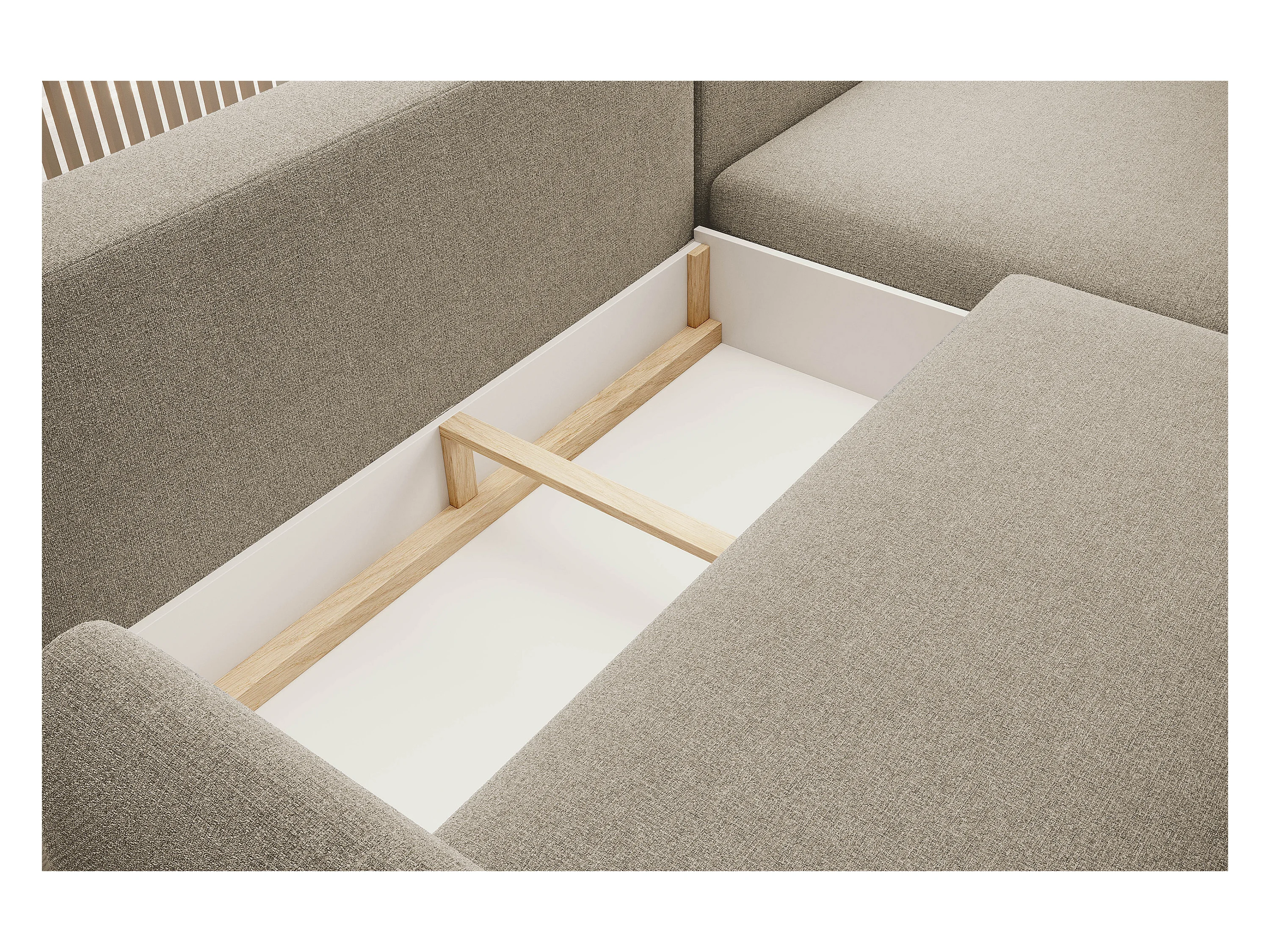 CANAPE BONO Canapé élégant avec fonction sommeil, Pieds en bois robustes, Accoudoirs élégants, Assise profonde 226x164x88cm, Côté gauche Sable