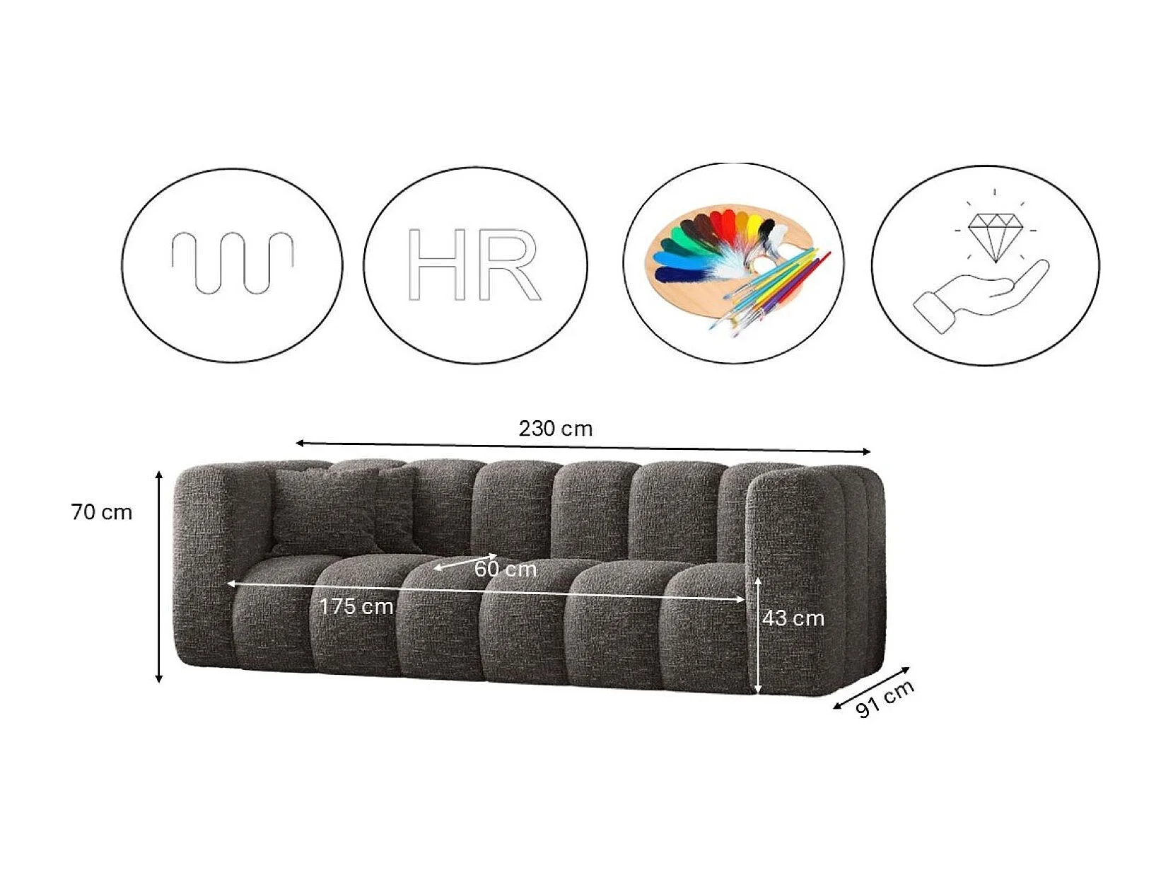 Canapé moderne tissu anthracite Valiko 210cm