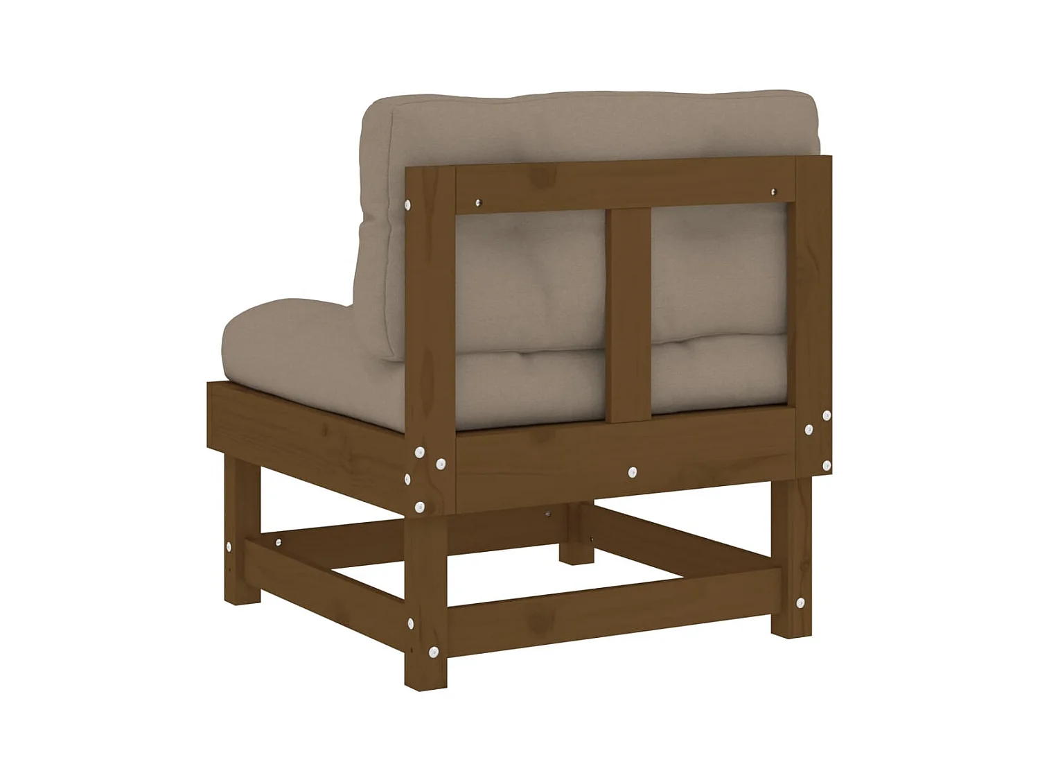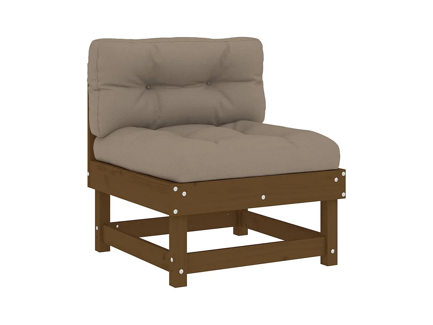 Canapé central de jardin avec coussins marron miel bois de pin solide PWRS43691