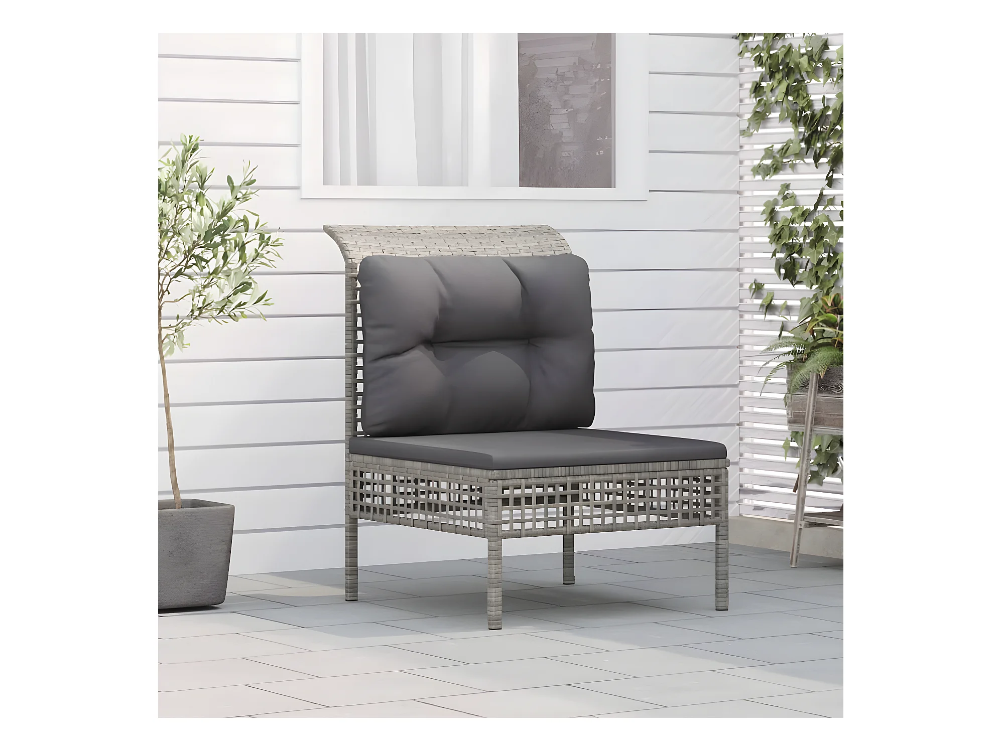 Canapé de jardin sans accoudoirs coussins gris clair poly rotin FR577908
