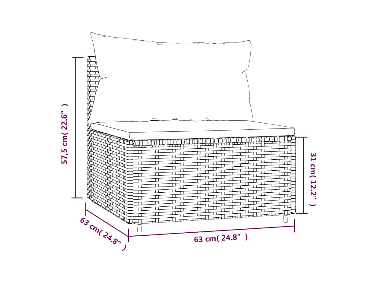 Canapé de jardin sans accoudoirs coussins noir résine tressée