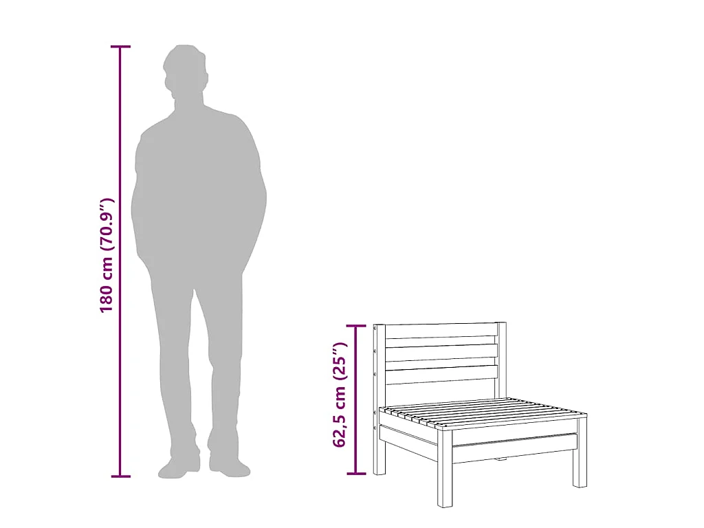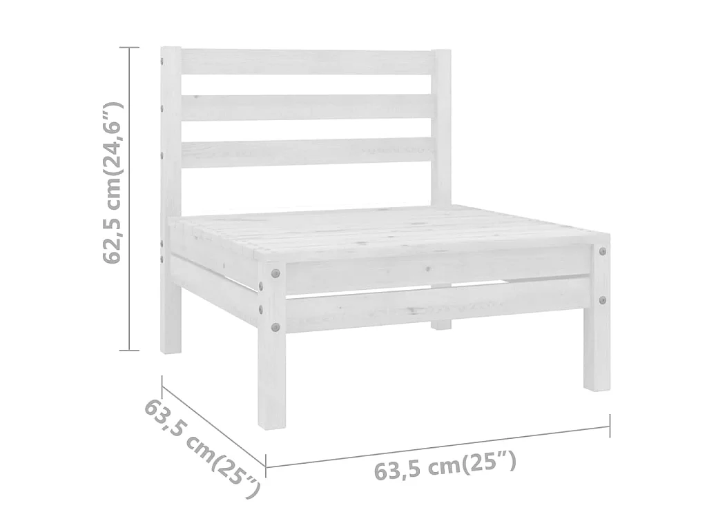 Canapé central de jardin blanc bois de pin massif
