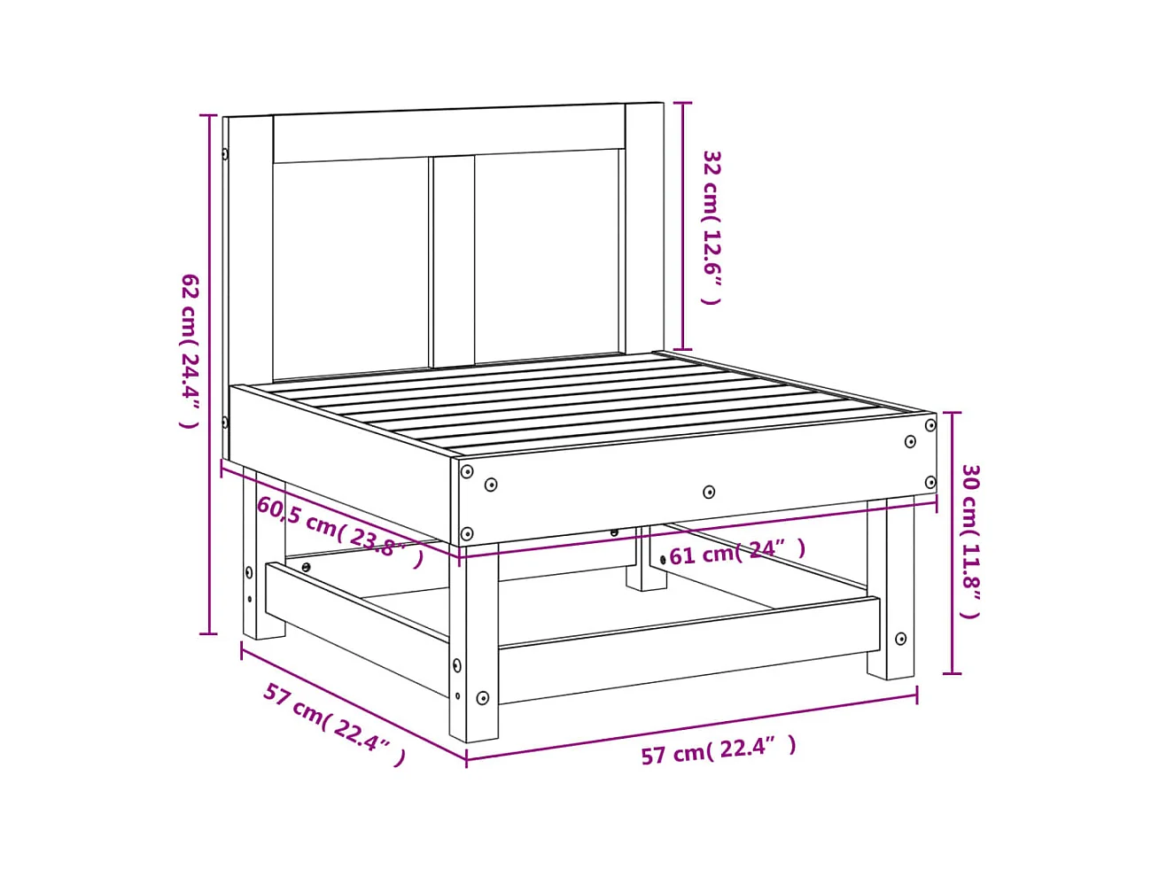 Canapé central de jardin avec coussins bois de pin imprégné PWRS49826