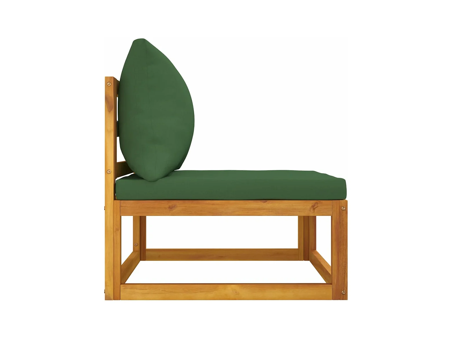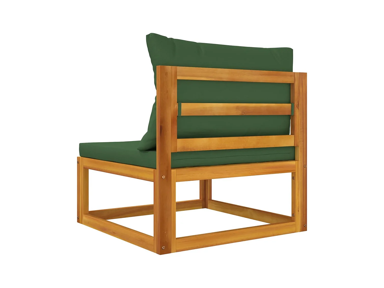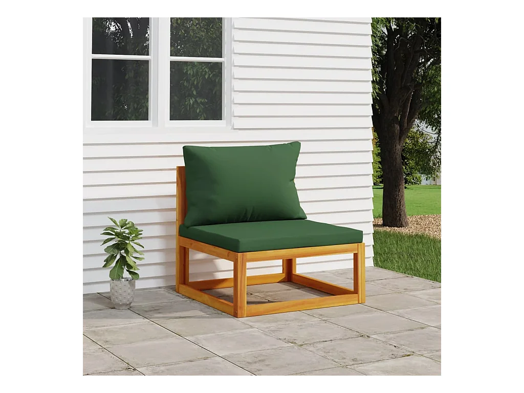 Canapé central de jardin et coussins verts bois massif d'acacia FR33195