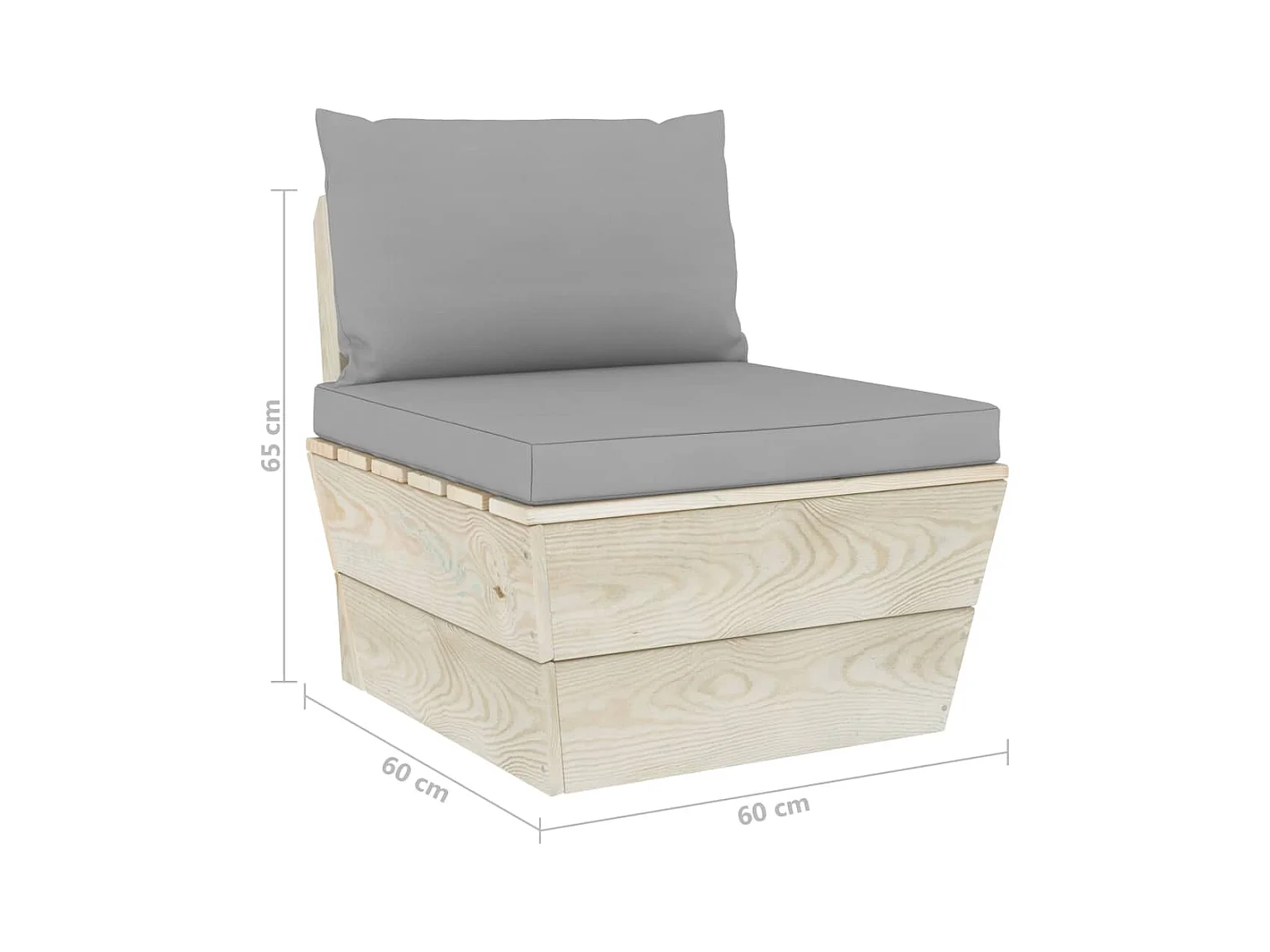 Canapé central 120x80 cm gris bois de pin massif