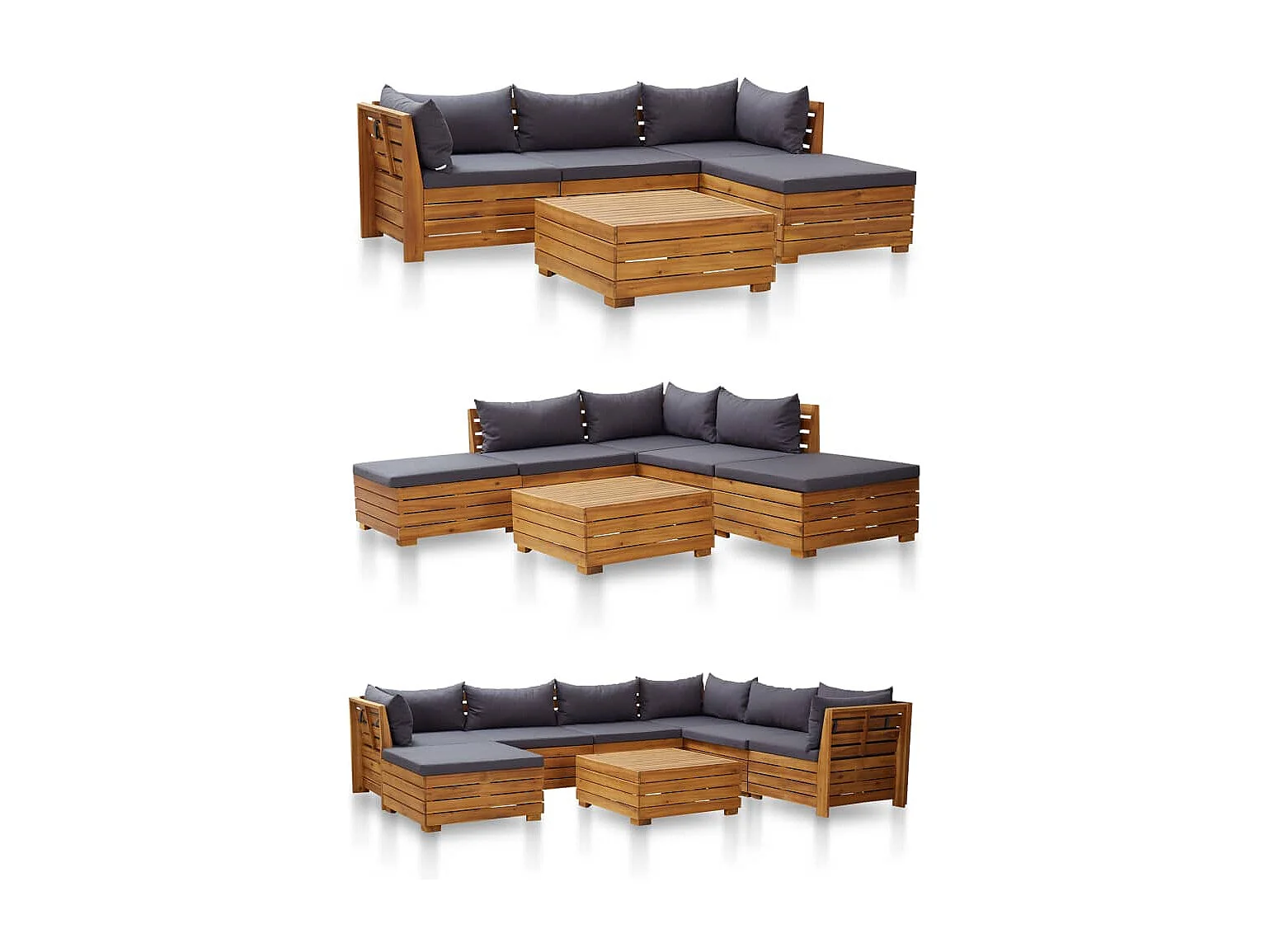 Canapé central sectionnel 1 pc et coussins Bois d'acacia massif