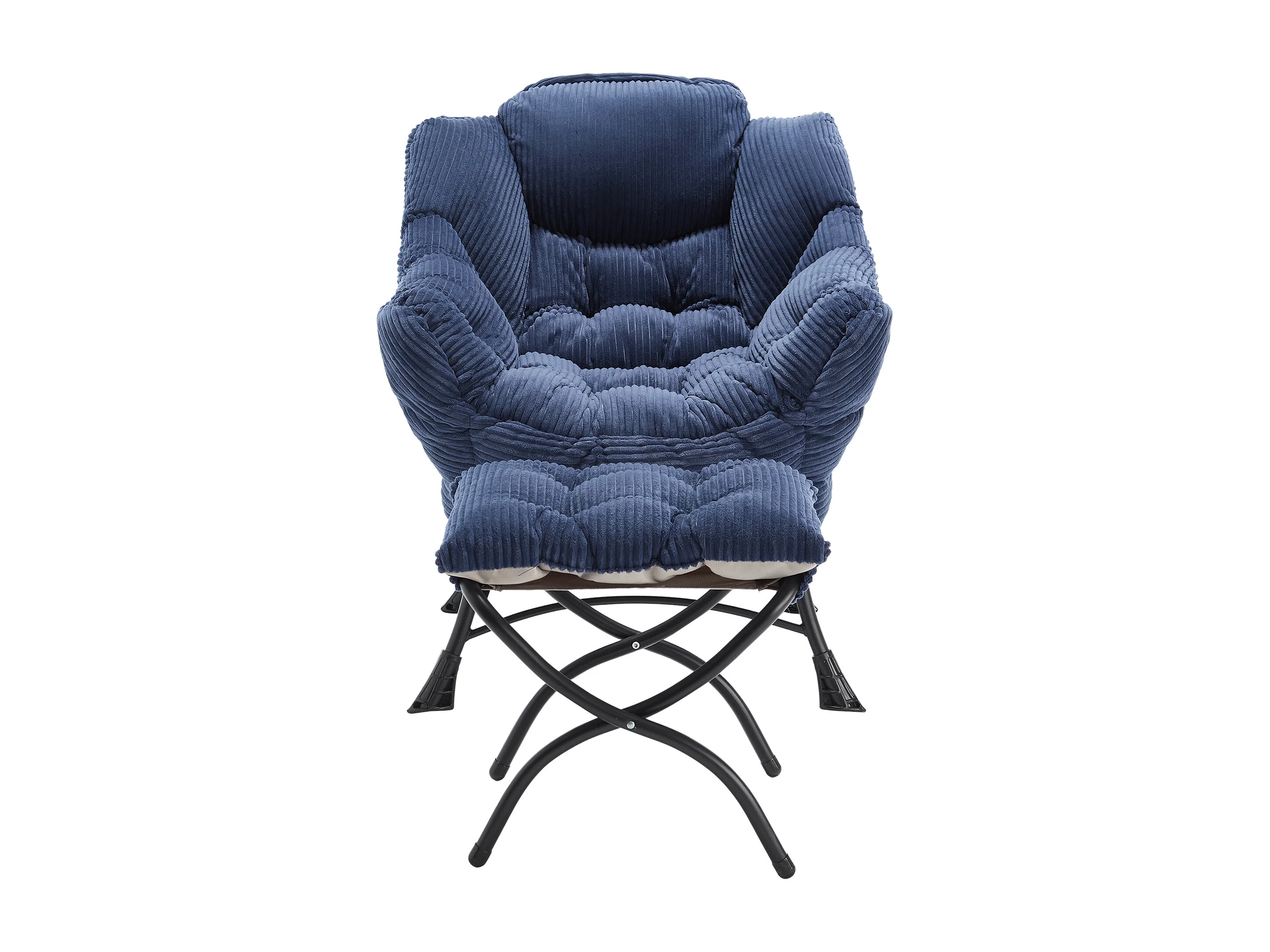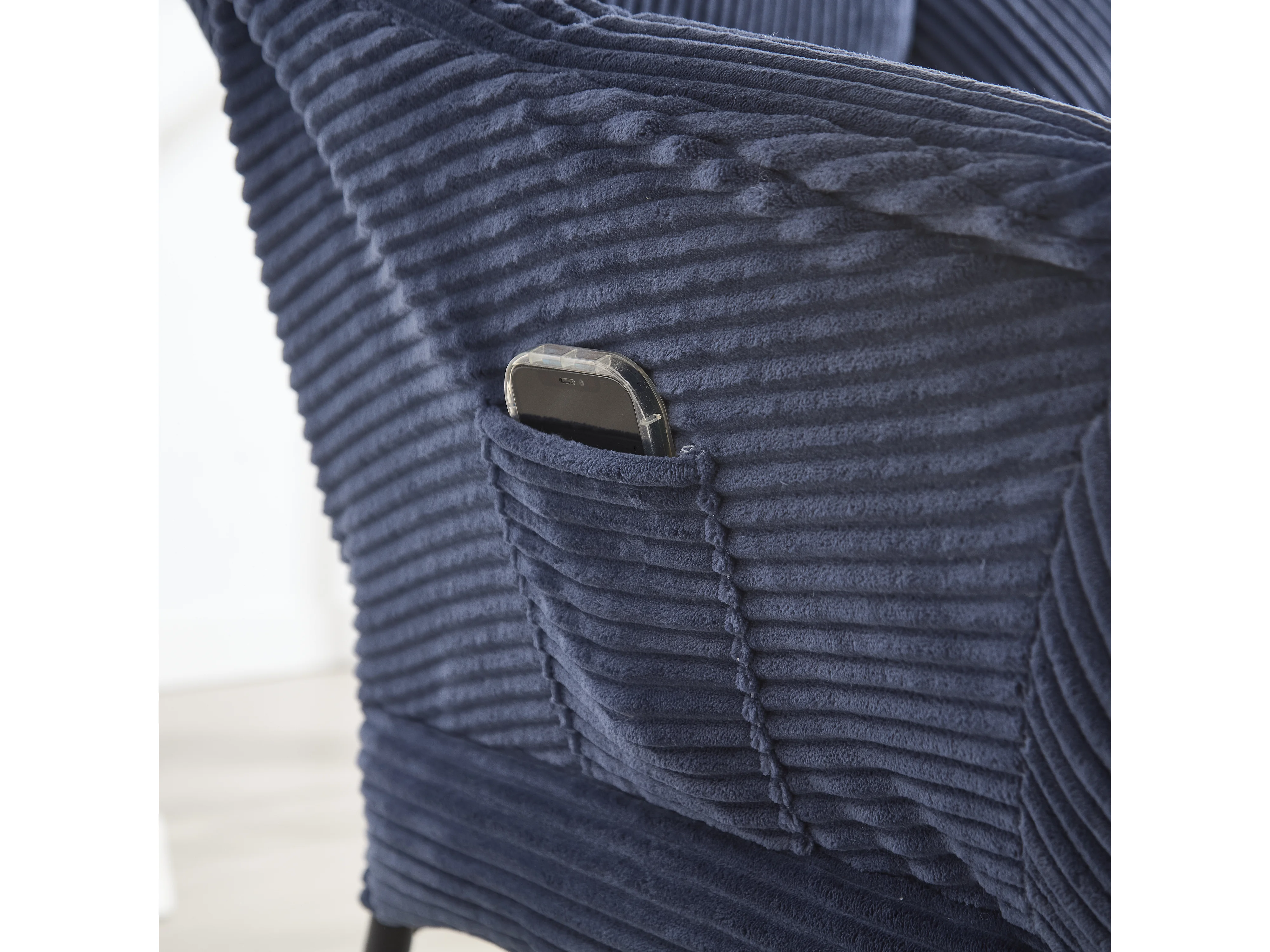 Canapé chaise avec accoudoirs poches latérales repose - pieds bleu marine