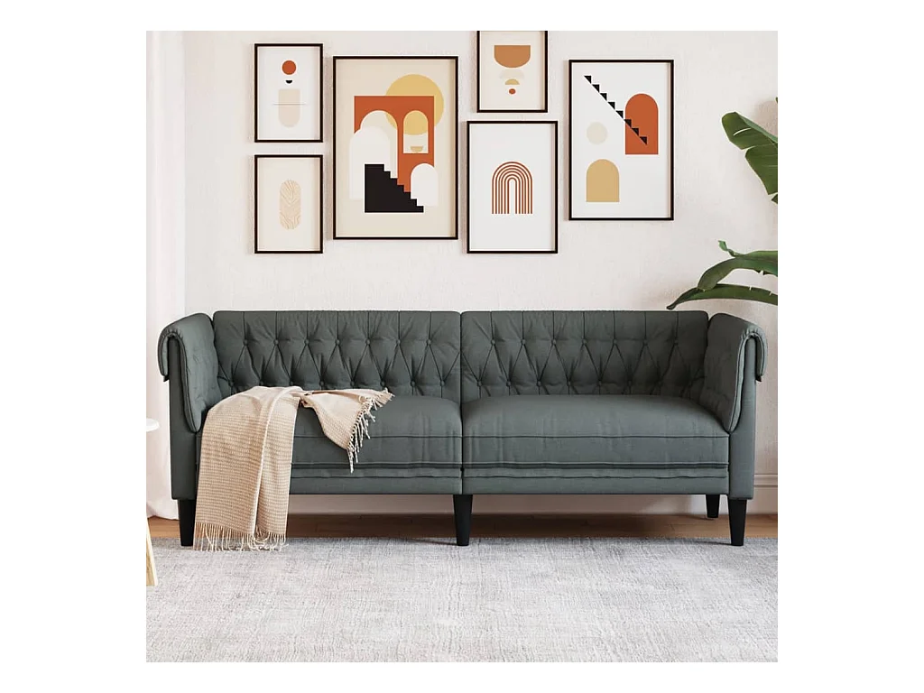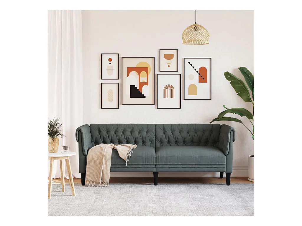 Canapé Chesterfield 3 places gris foncé tissu FR61480