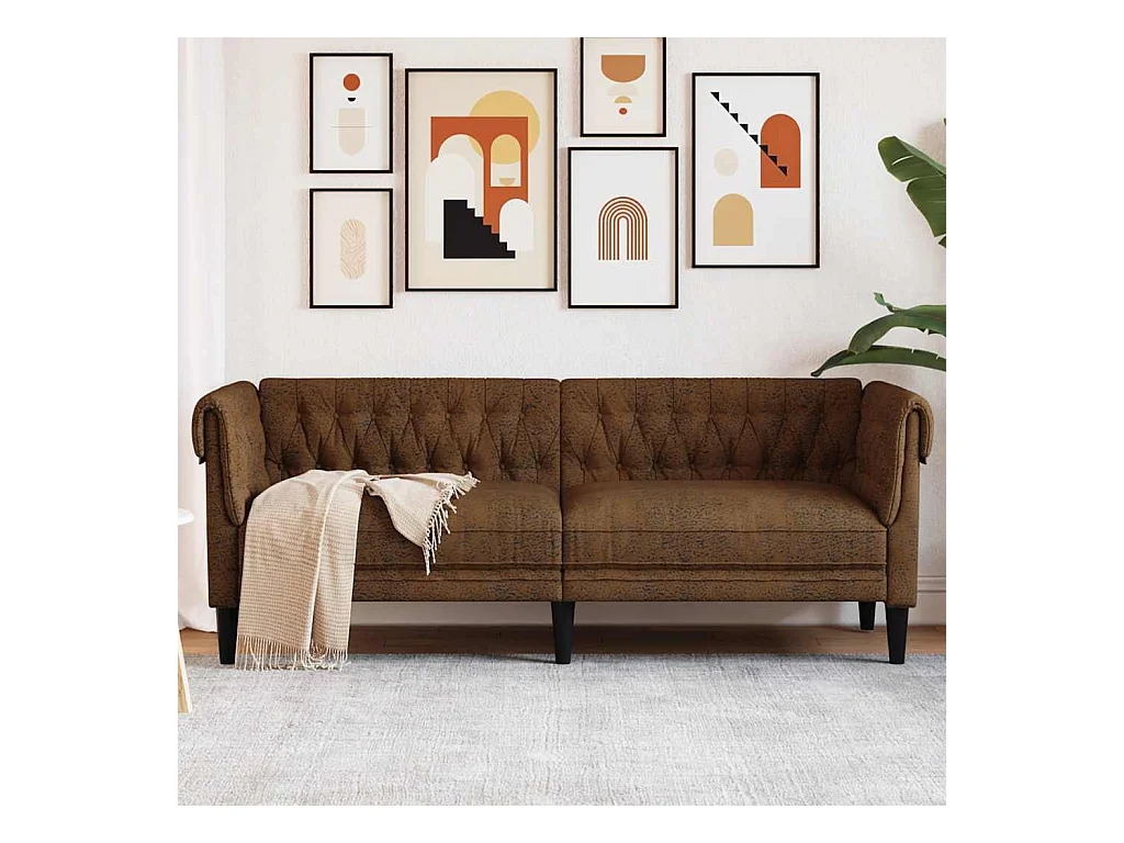 Canapé 3 places avec oreillers décoratifs marron 180 cm tissu