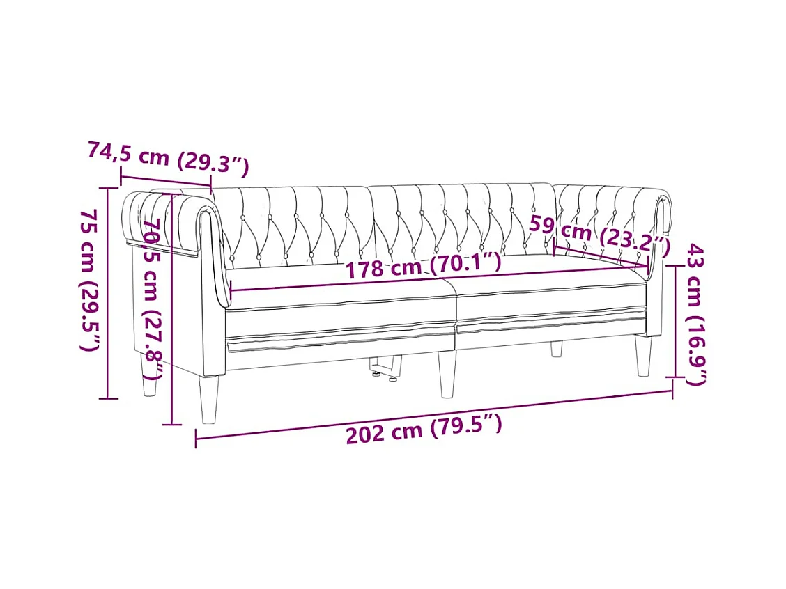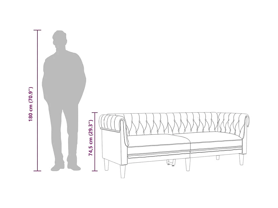 Canapé à 3 places avec repose-pieds Marron 210 cm Tissu