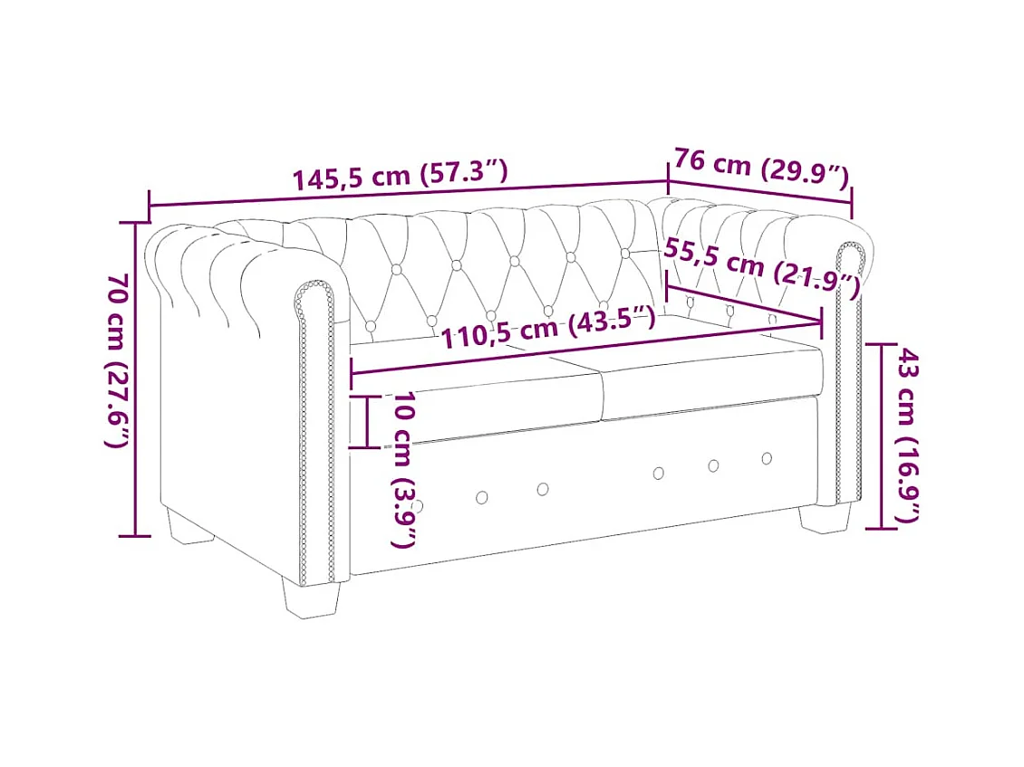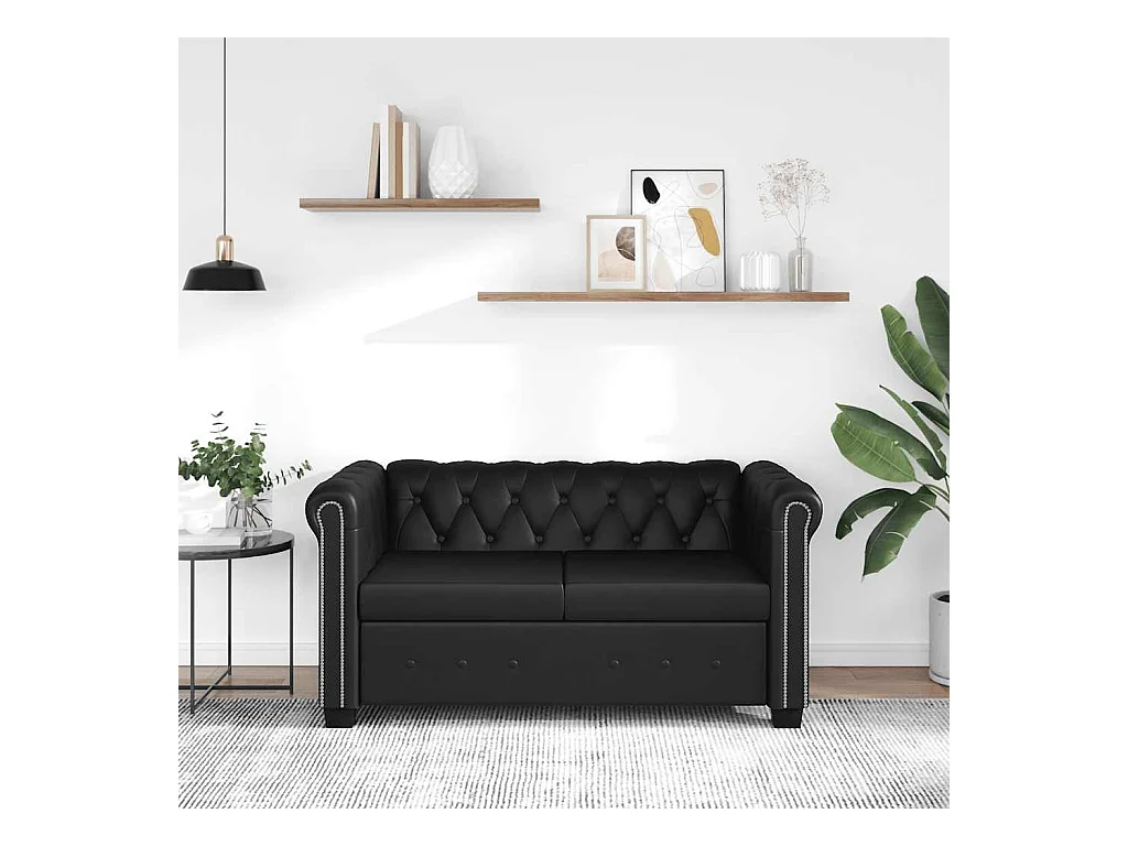 Canapé Chesterfield à 2 places cuir synthétique noir