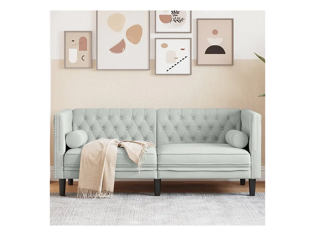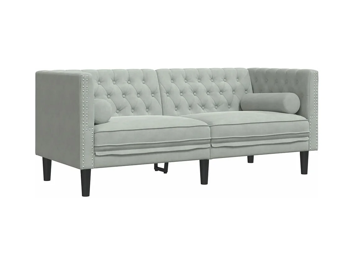 Canapé Chesterfield avec traversins 2 places gris clair velours