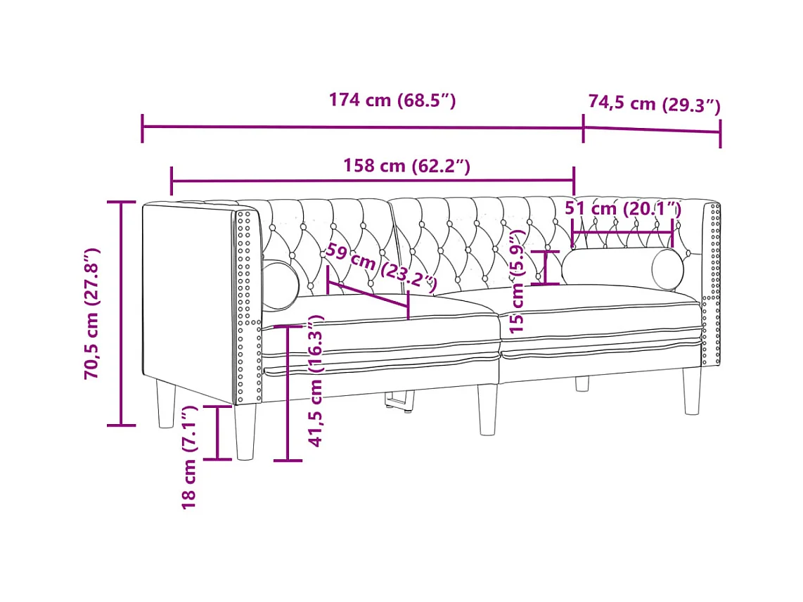 Canapé Chesterfield avec traversins 3 places gris clair velours