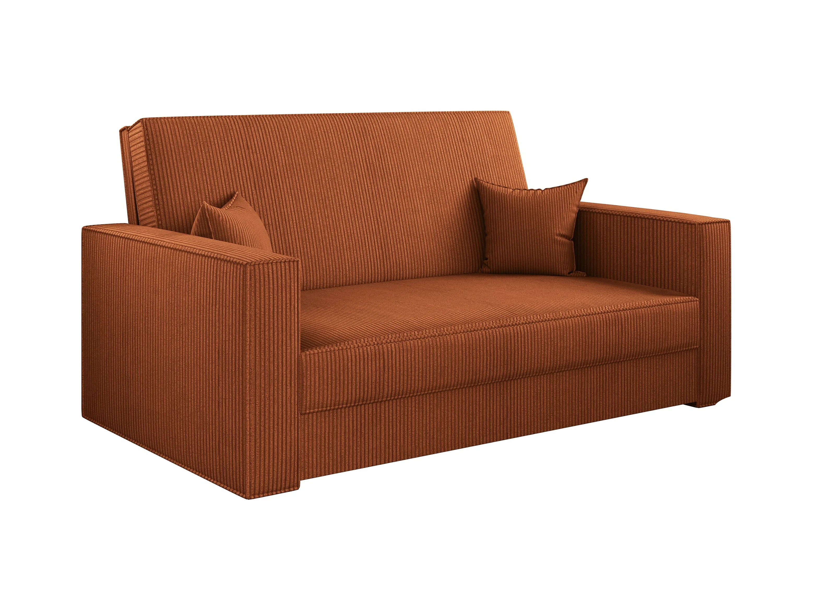 Canapé OLIO Convertible avec coffre, coussins décoratifs, fonction pliable, design scandinave, couchage 142x200 cm, pieds noirs, couleur ORANGE FONCÉ