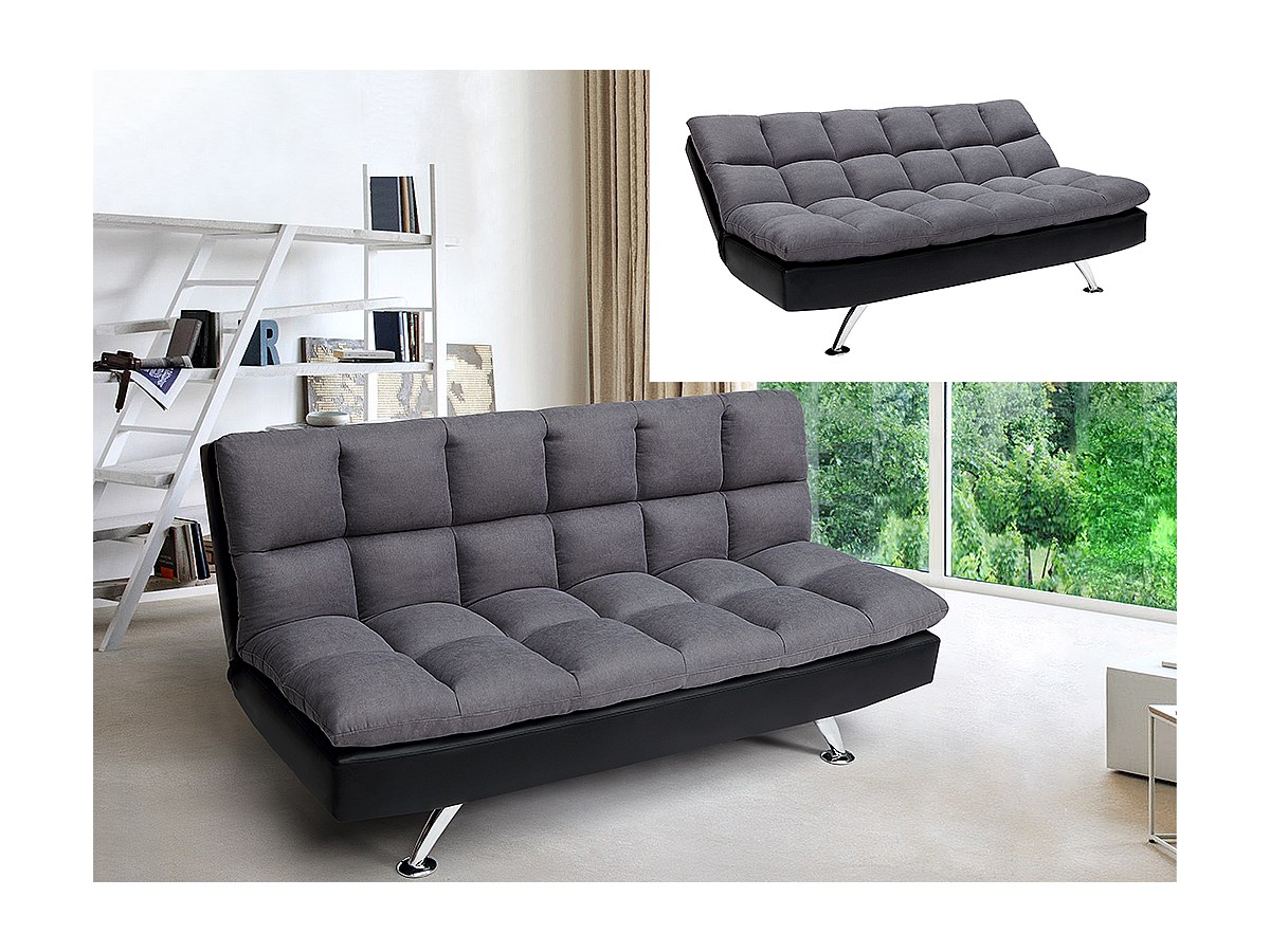 Canapé clic-clac 3 places en microfibre et simili DIDIER II - Gris et noir
