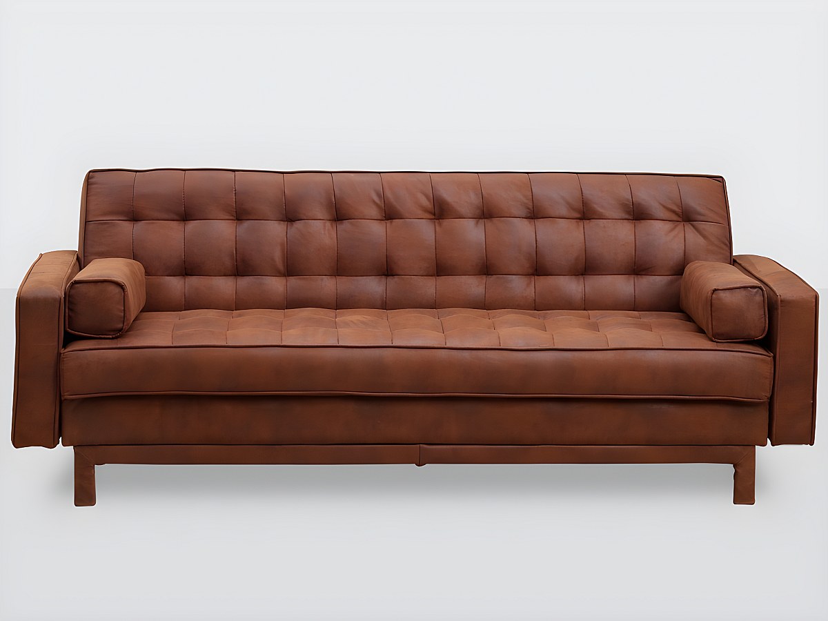 Canapé clic-clac en microfibre ELEANOR - Marron effet vintage