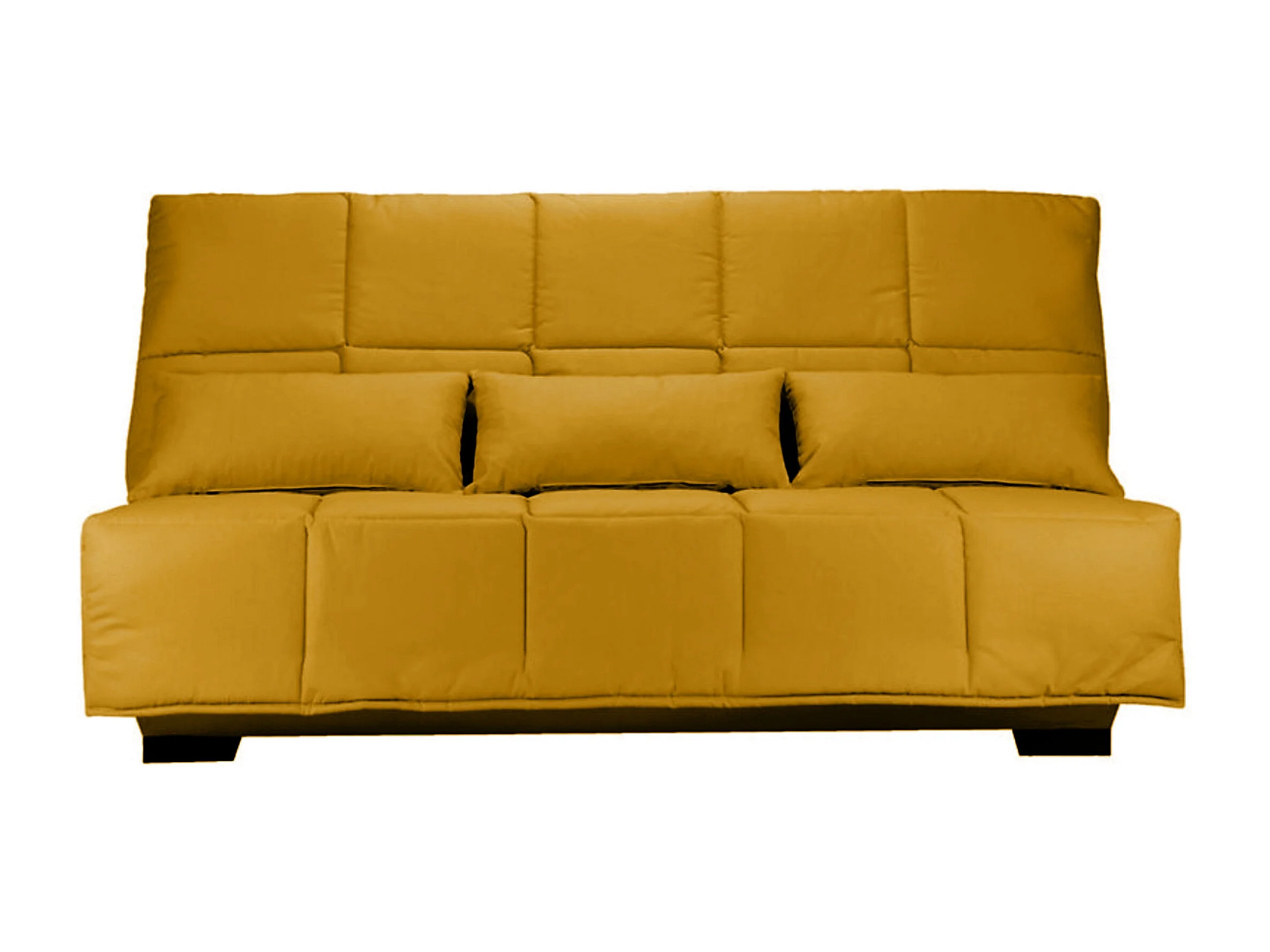 Canapé clic clac tissu avec rangement matelas Starconfort 15cm Lina 193cm-Couleur Jaune ambre