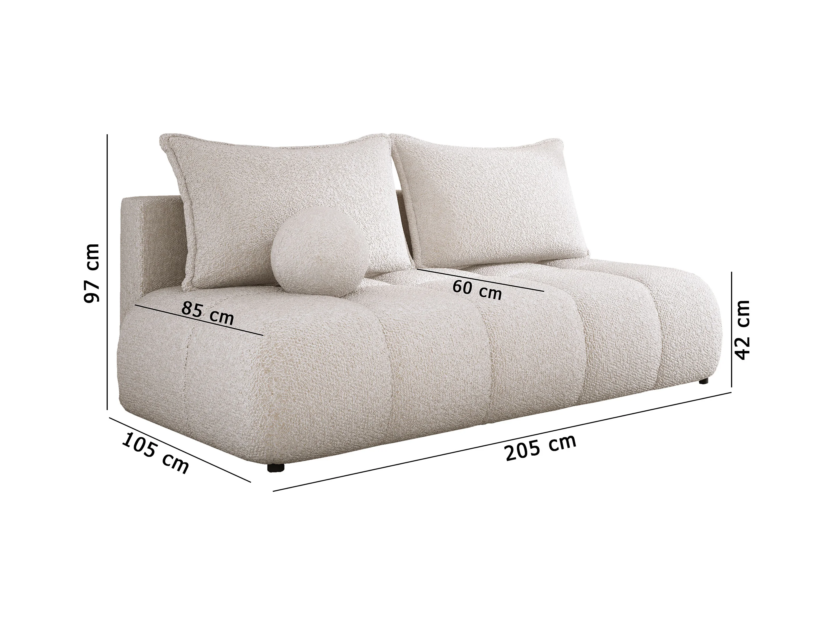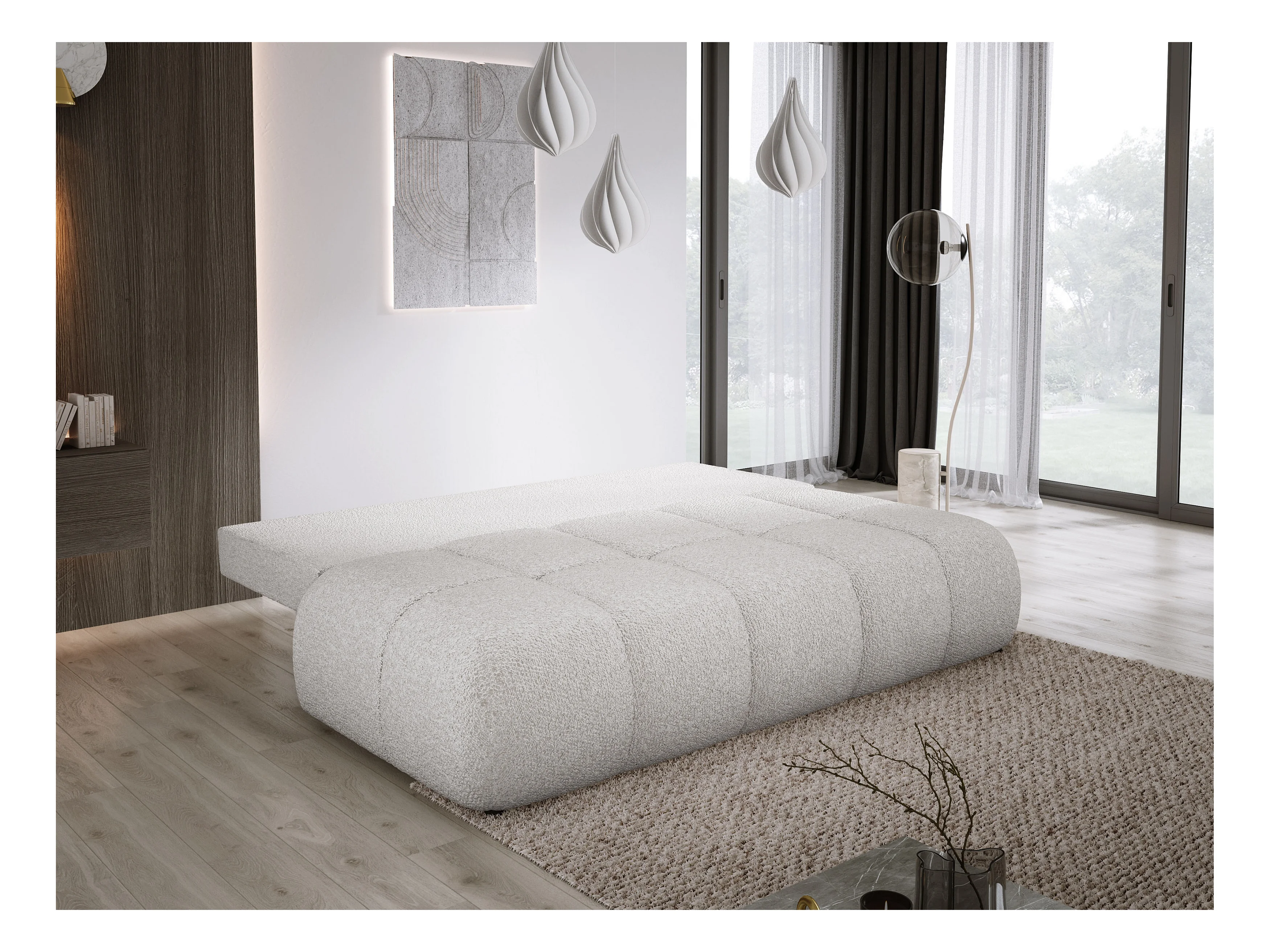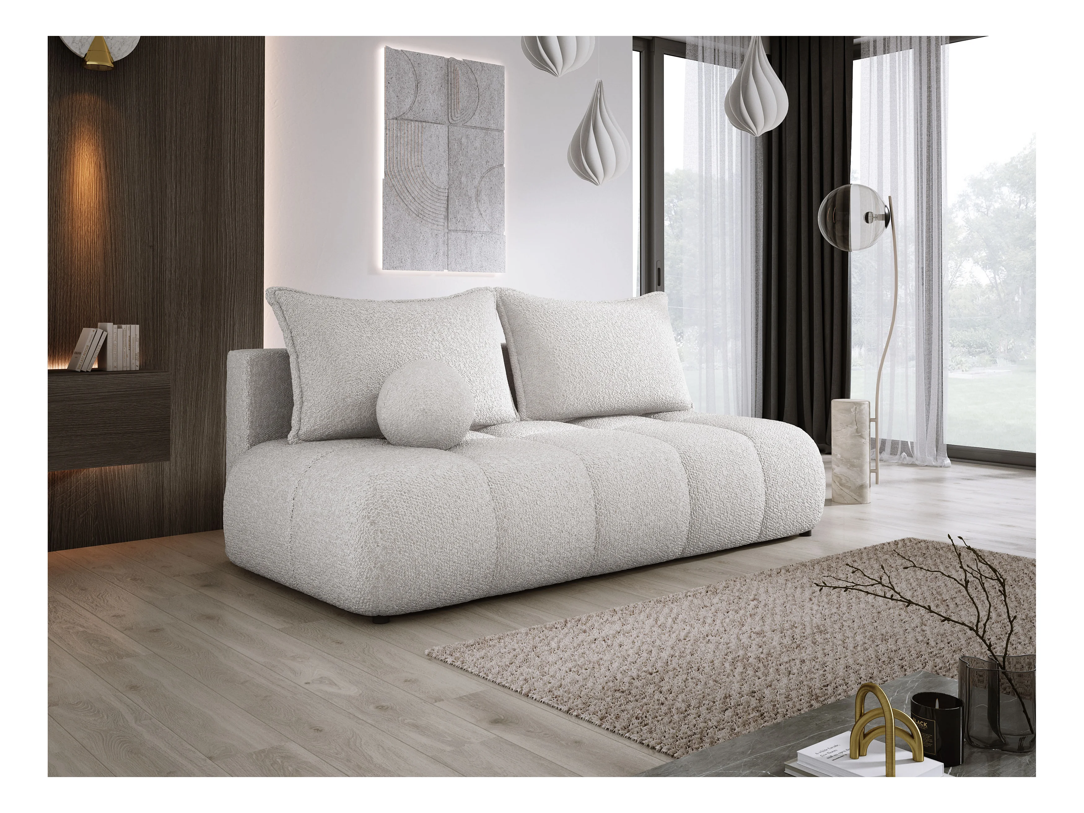 Sofa COCO convertible avec couchage, tissu CLOUD, 2 places, autoportant, 205x105x97 cm, couleur : Frêne