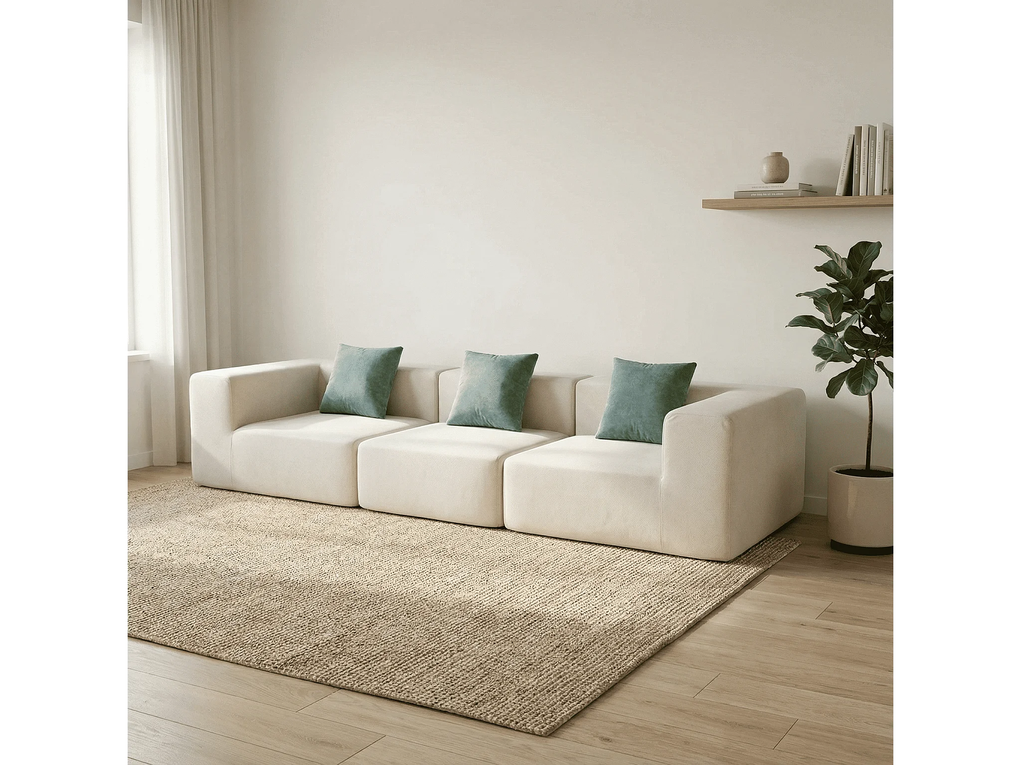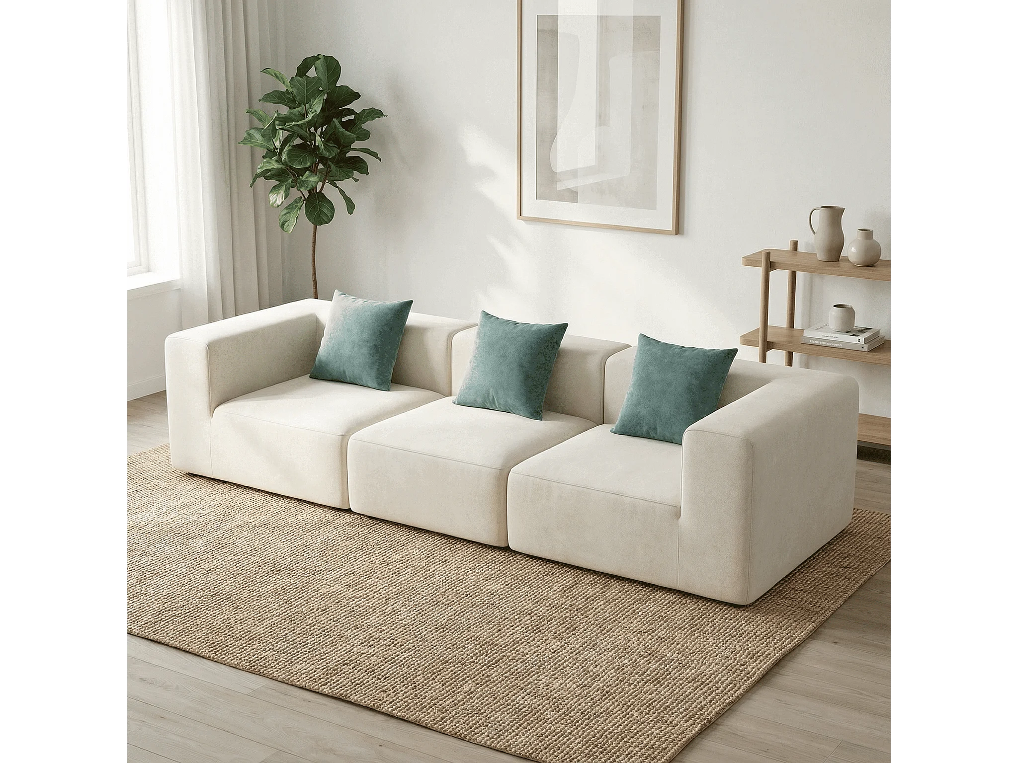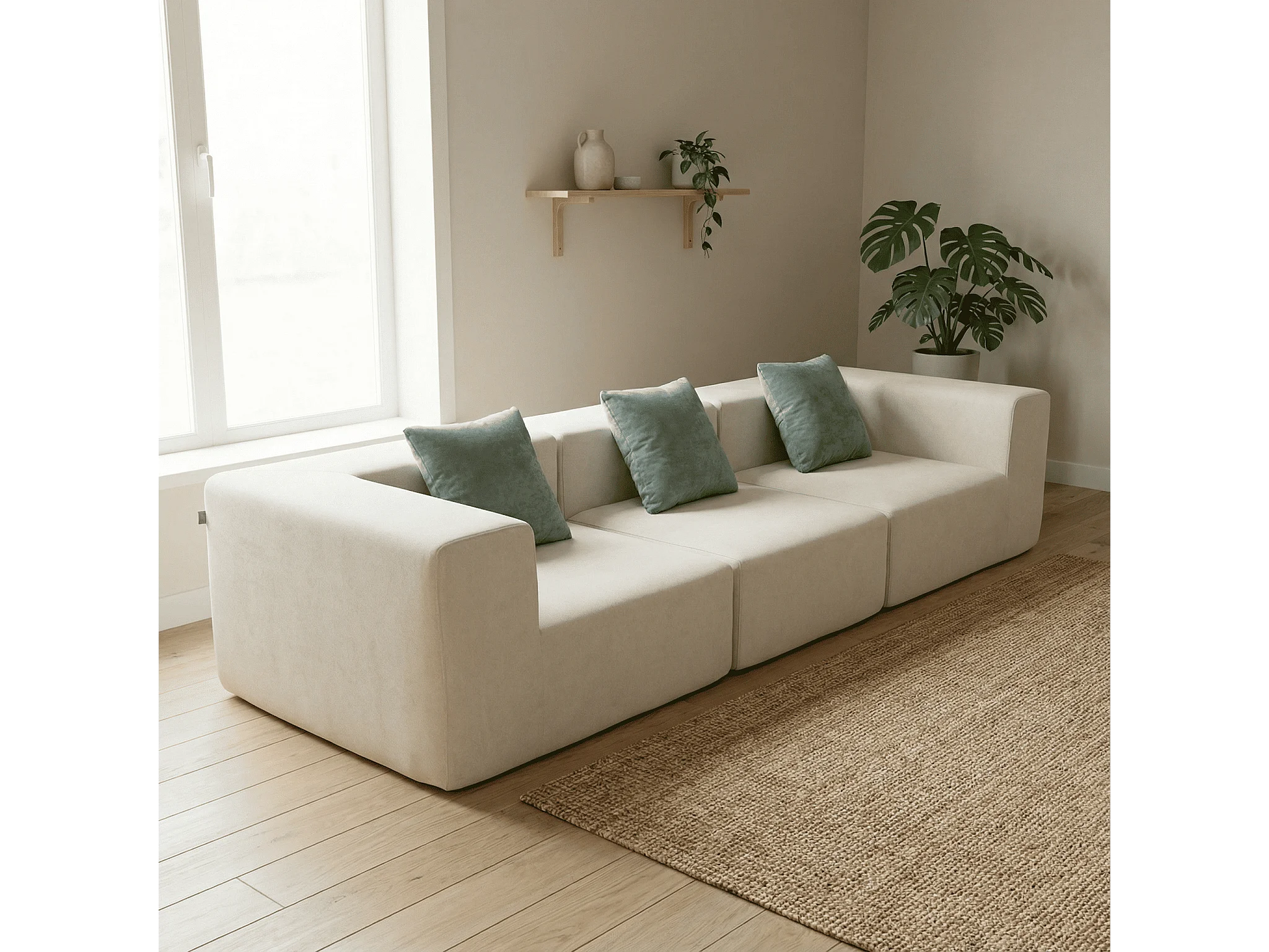 Canapé Compressé 3 places Pure en flannelle - Blanc / Sauge