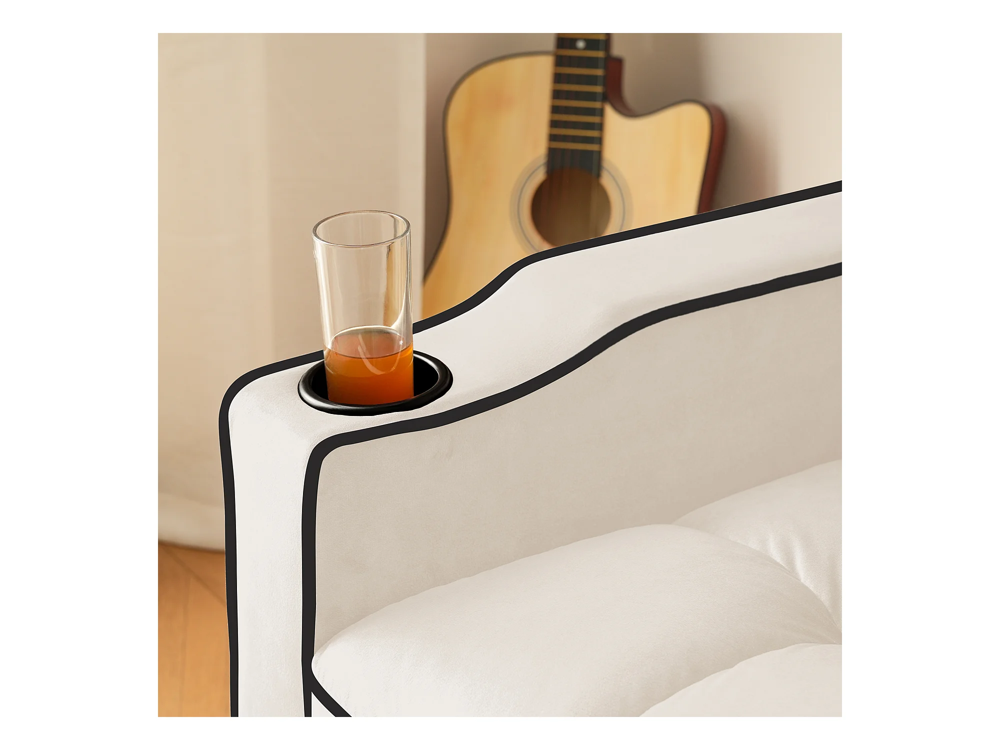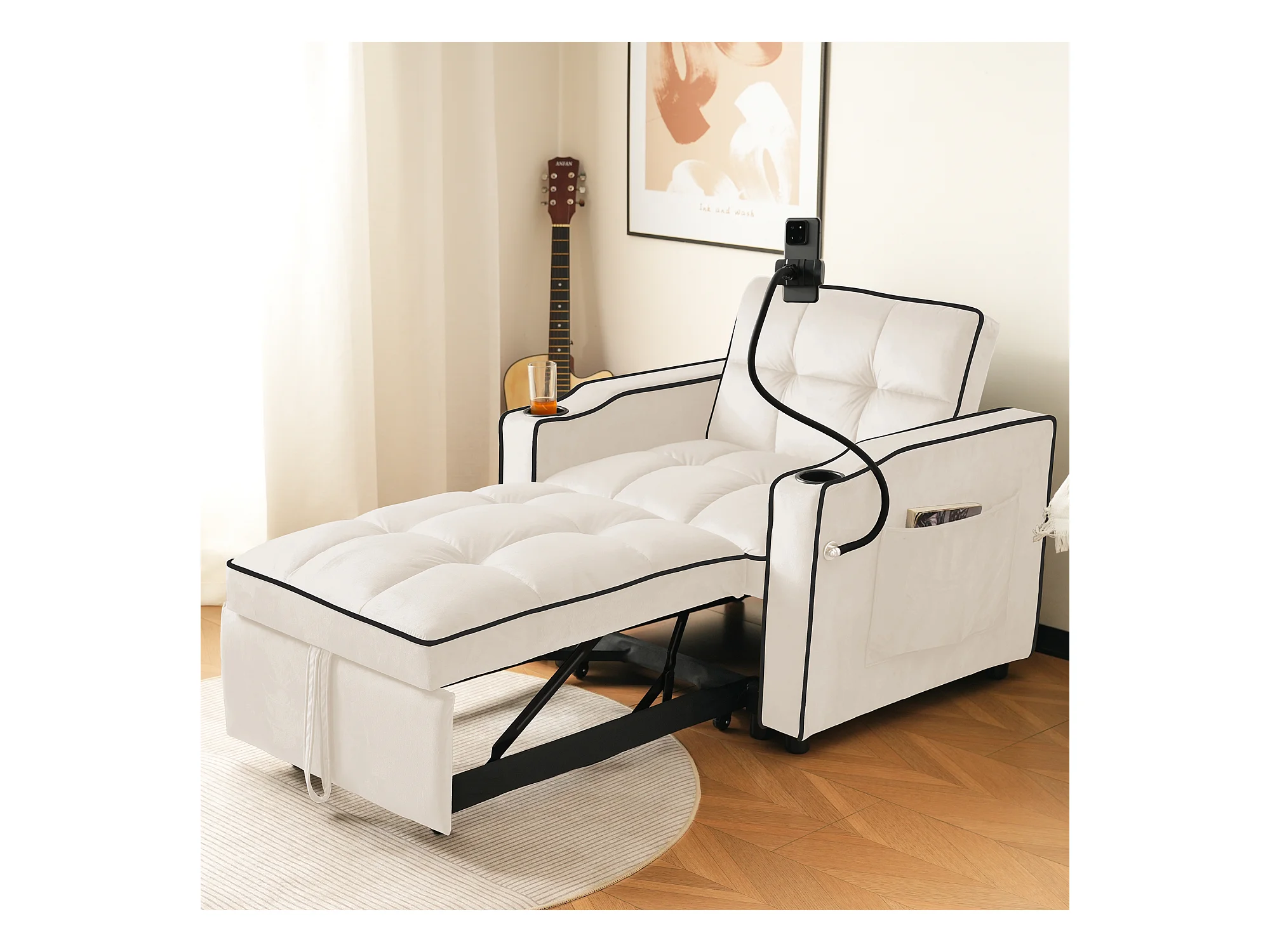 Canapé convertible 1 place avec porte-gobelets et support de téléphone - 83 x 75 x 167 cm - Velours - Beige