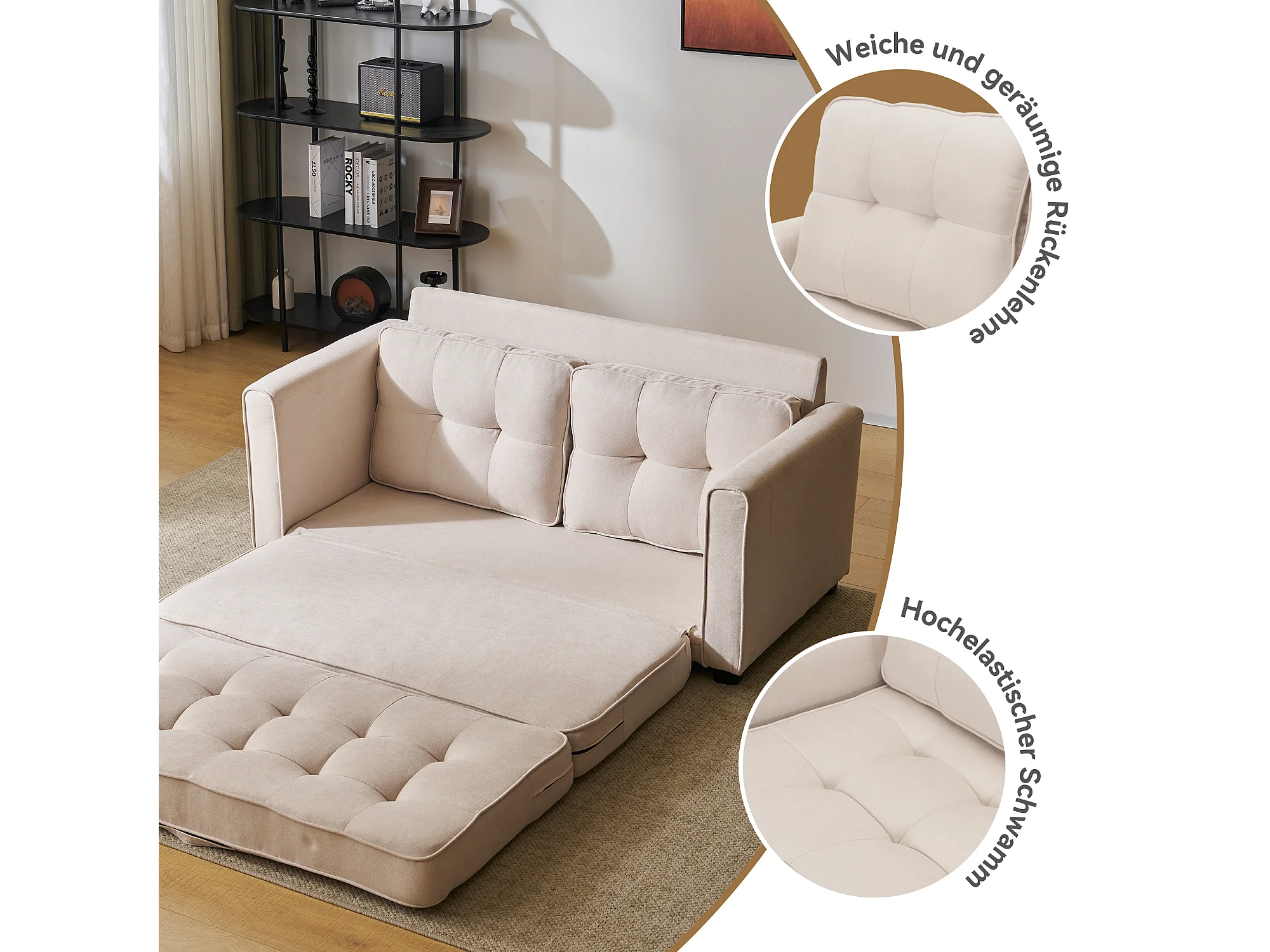 Canapé convertible 2 places avec fonction sommeil, canapé-lit - 151 x 205 x 86 cm - Tissu en lin - Beige