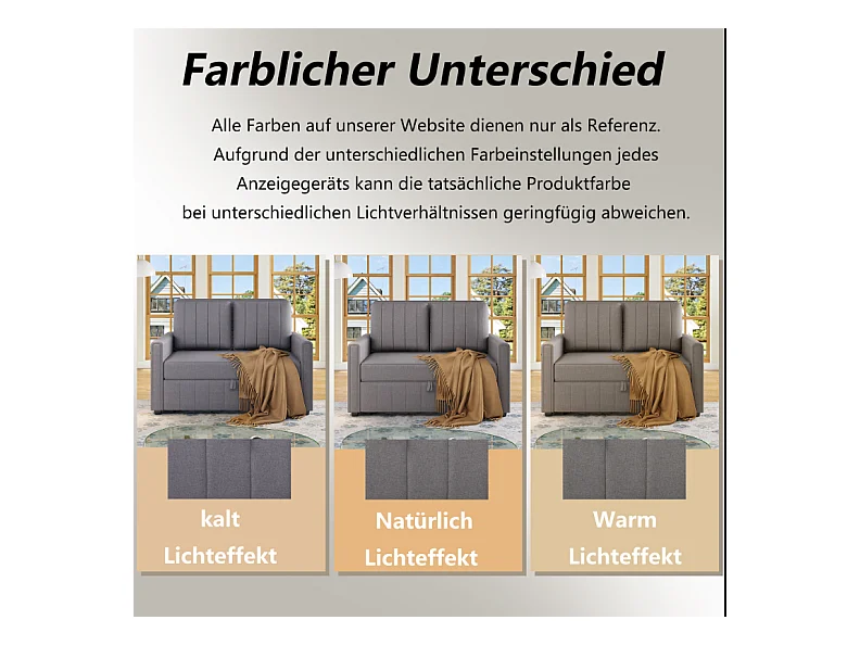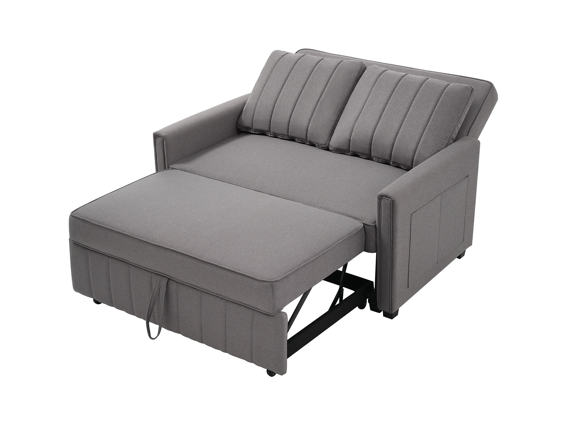 Canapé convertible 2 places, Canapé-lit pliant en tissu lin - 127 x 75/180 x 94 cm - avec fonction sommeil et dossier réglable - Gris