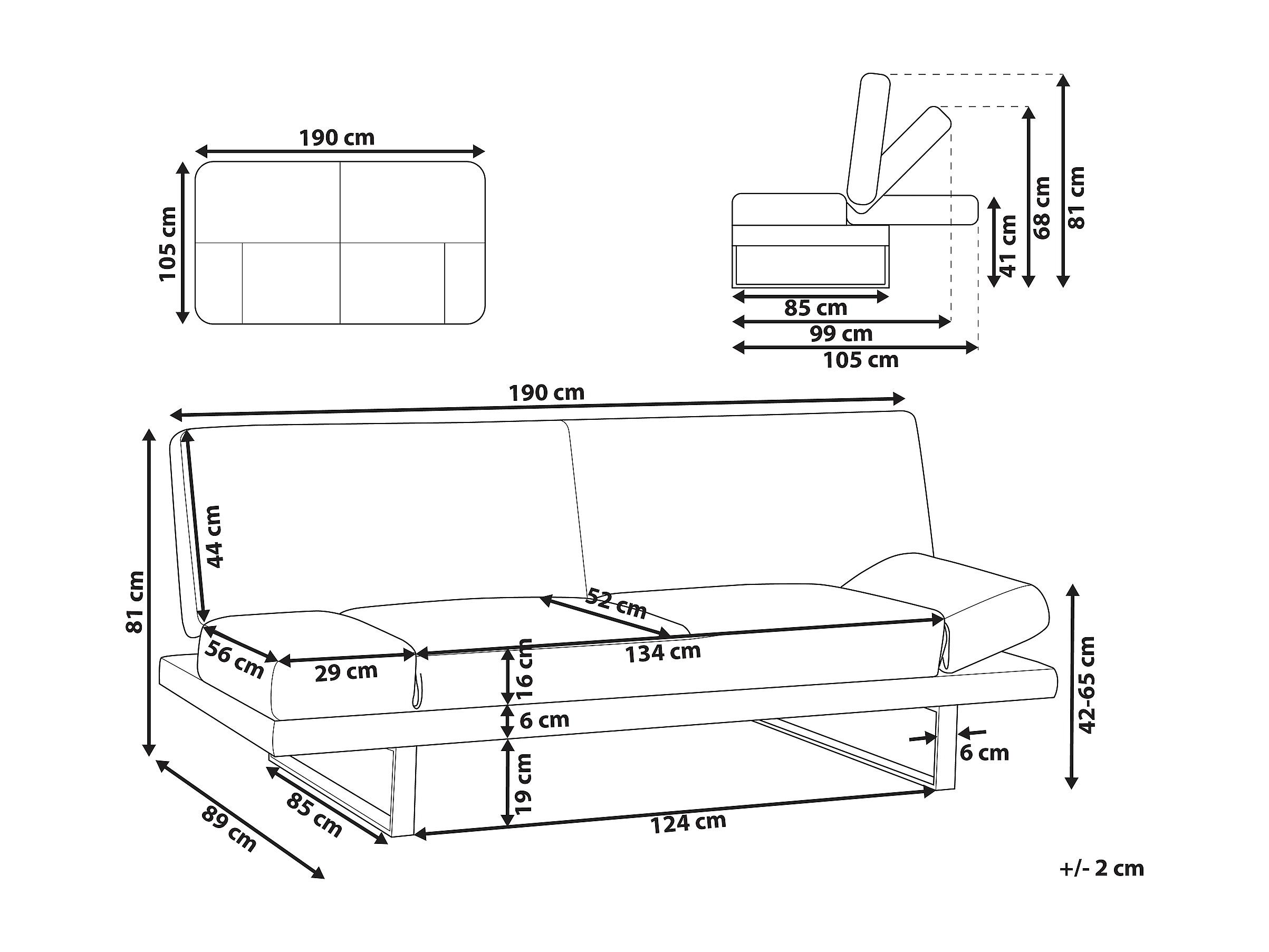 Canapé droit convertible 2 places