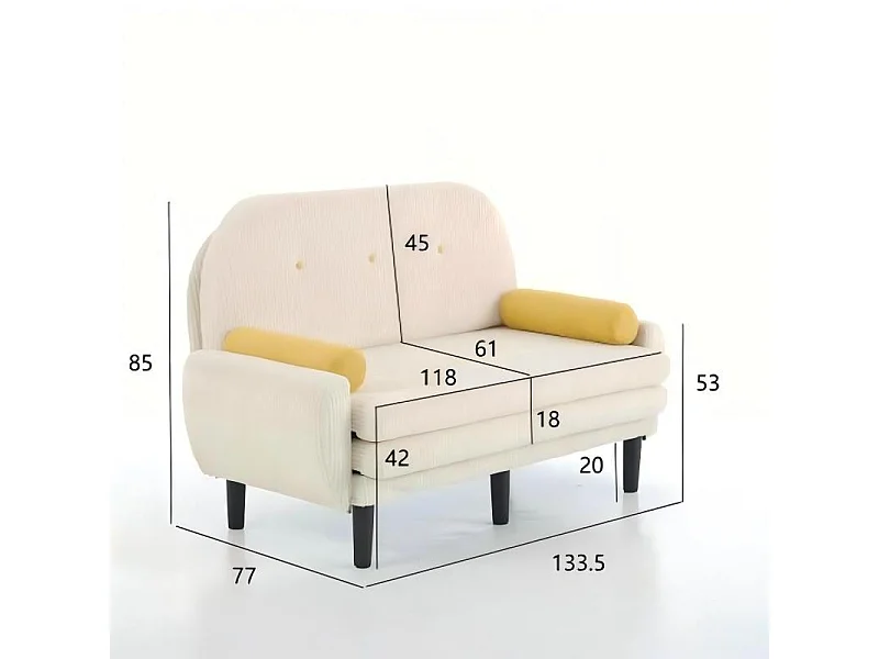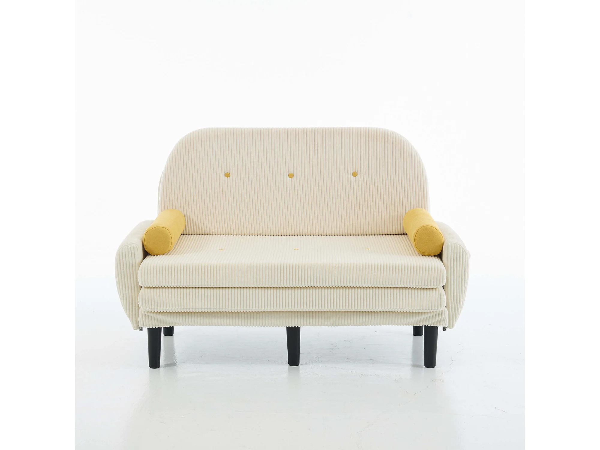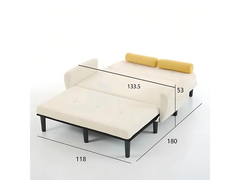 Canapé convertible 2 places en velours côtelé ivoire - Convertible en lit ou chaise longue