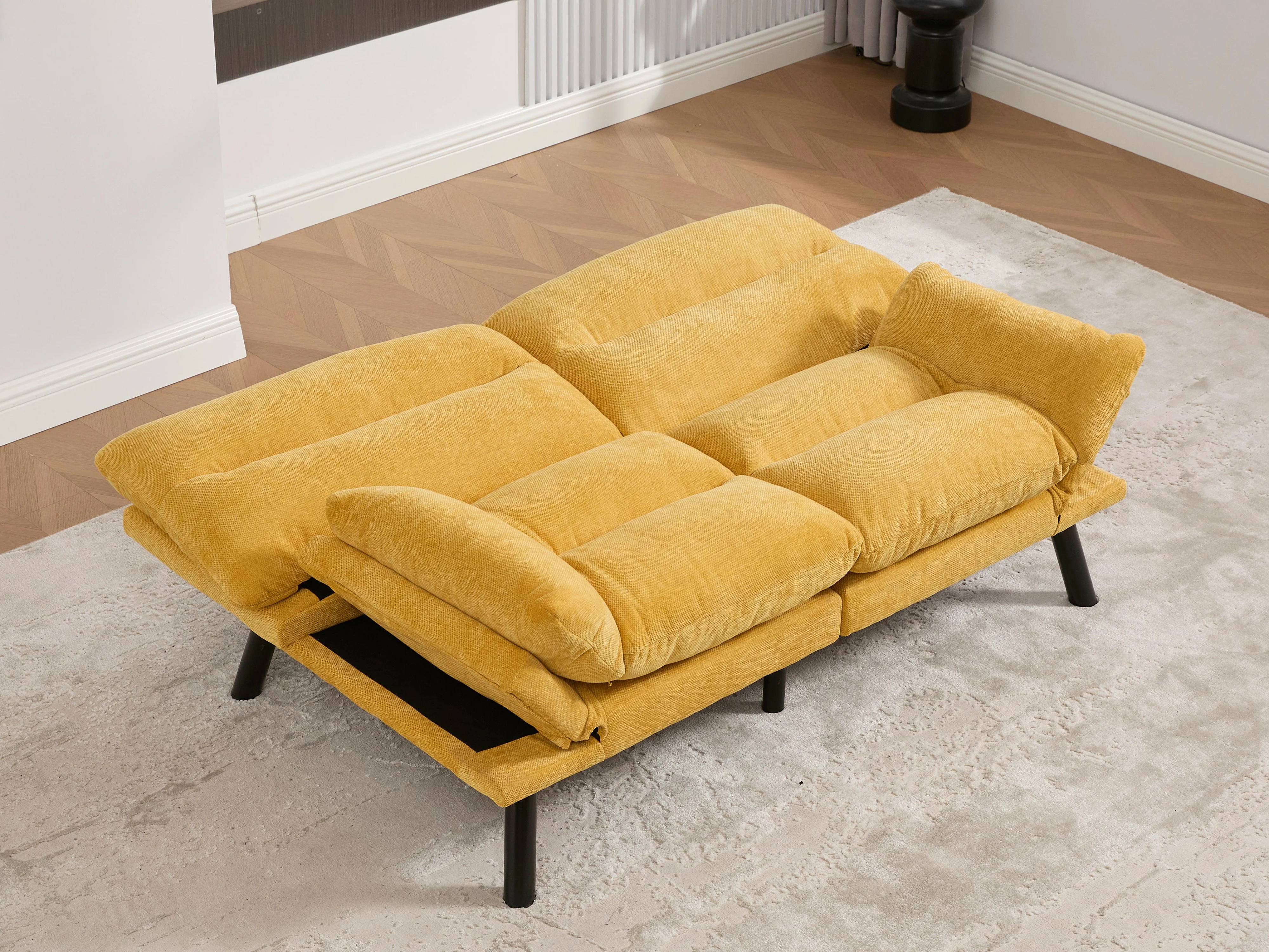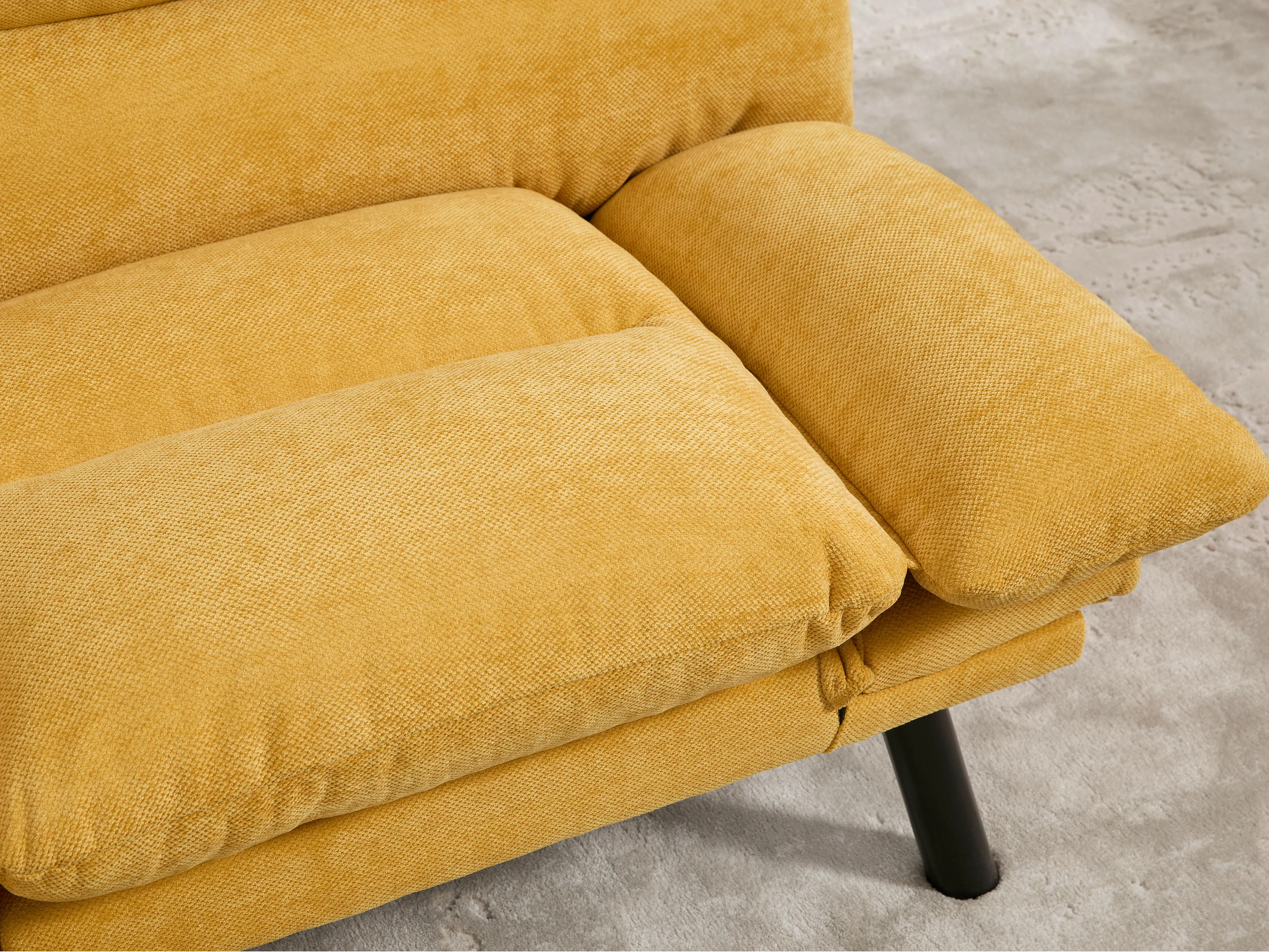 Canapé convertible 2 places jaune en tissu chenille - avec fonction rabattable - Confort et praticité, idéal pour salon, chambre ou petit espace