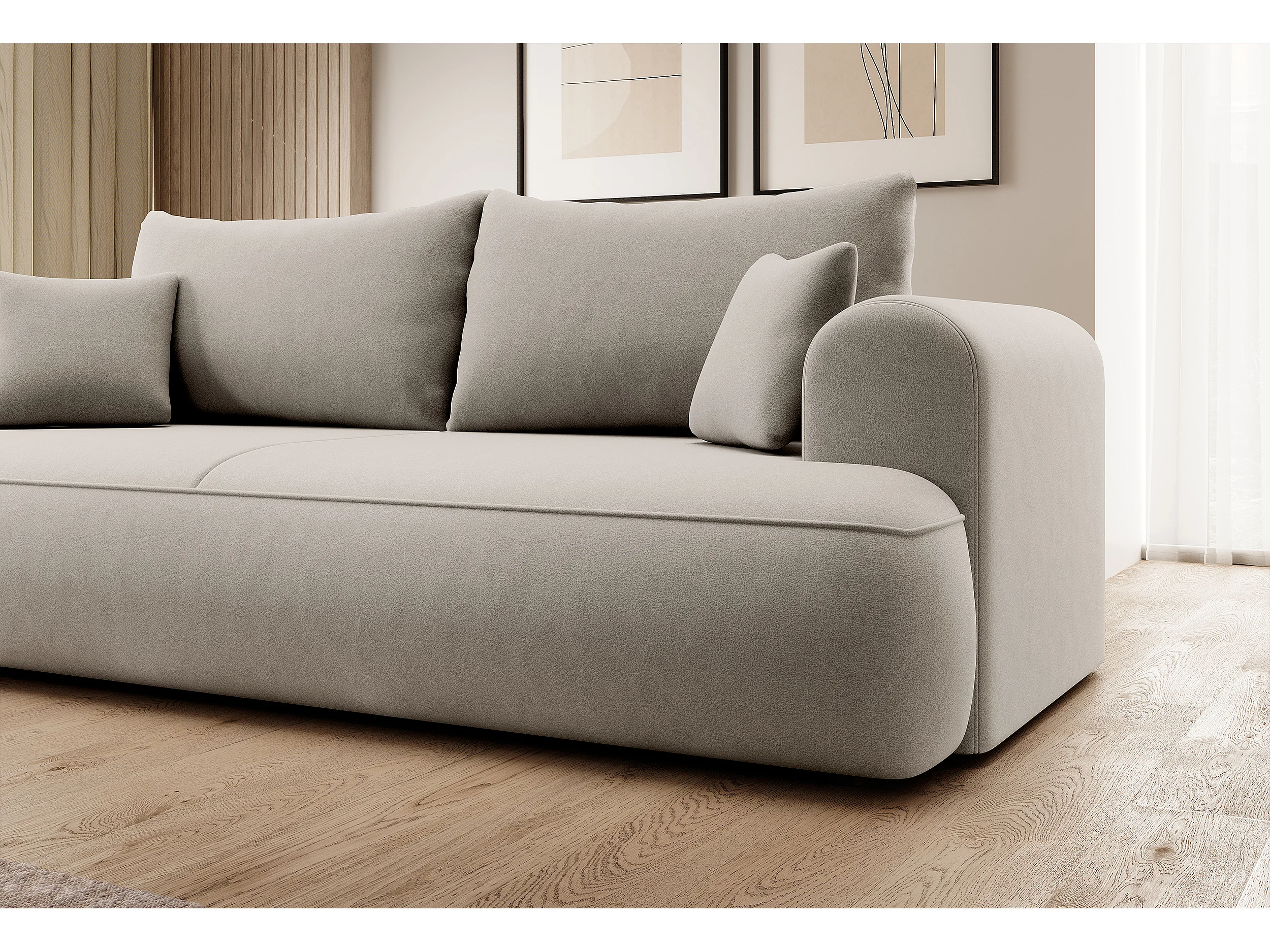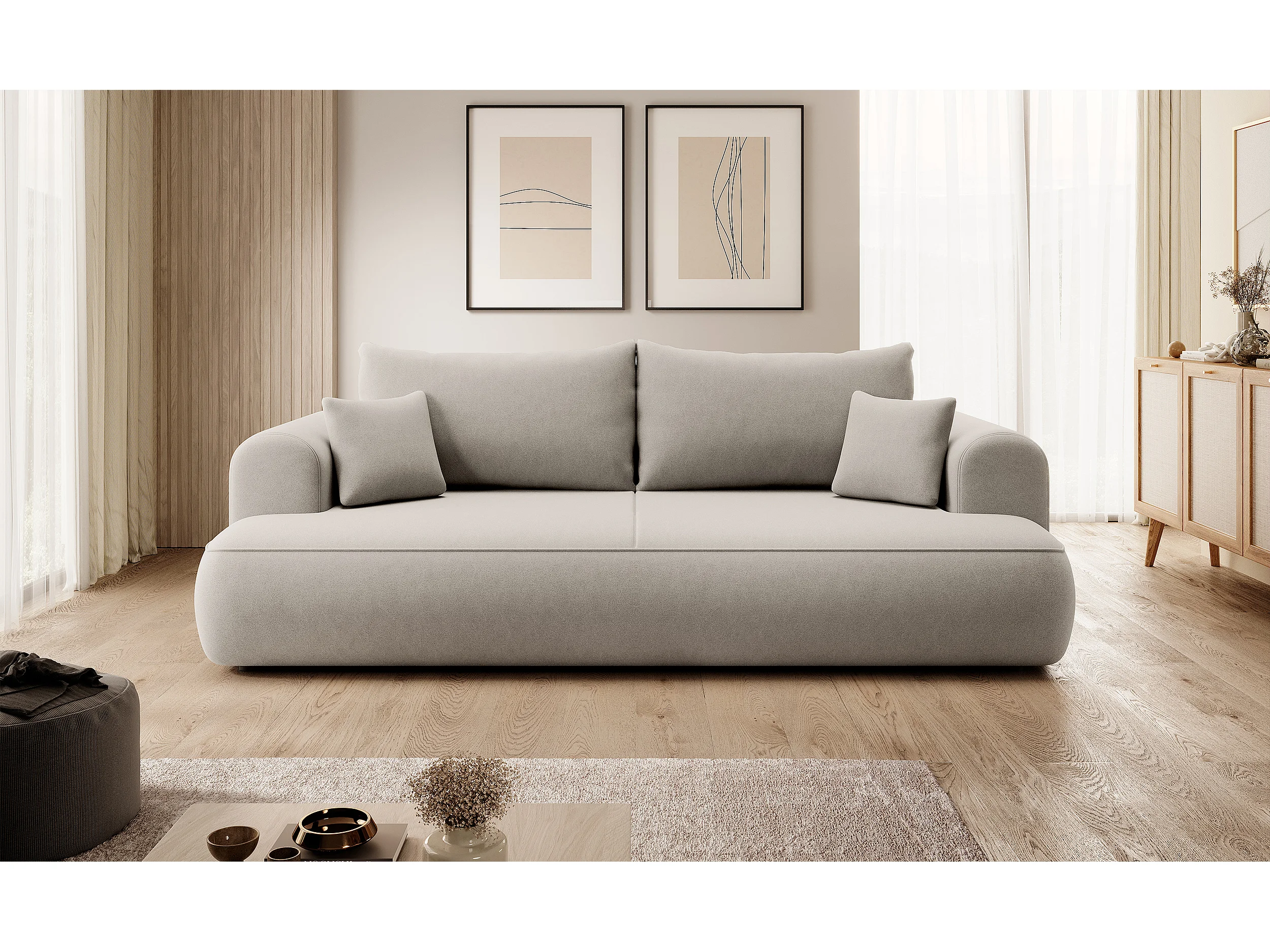 Canapé convertible - 3 places - avec coffre - crème velours - OVO