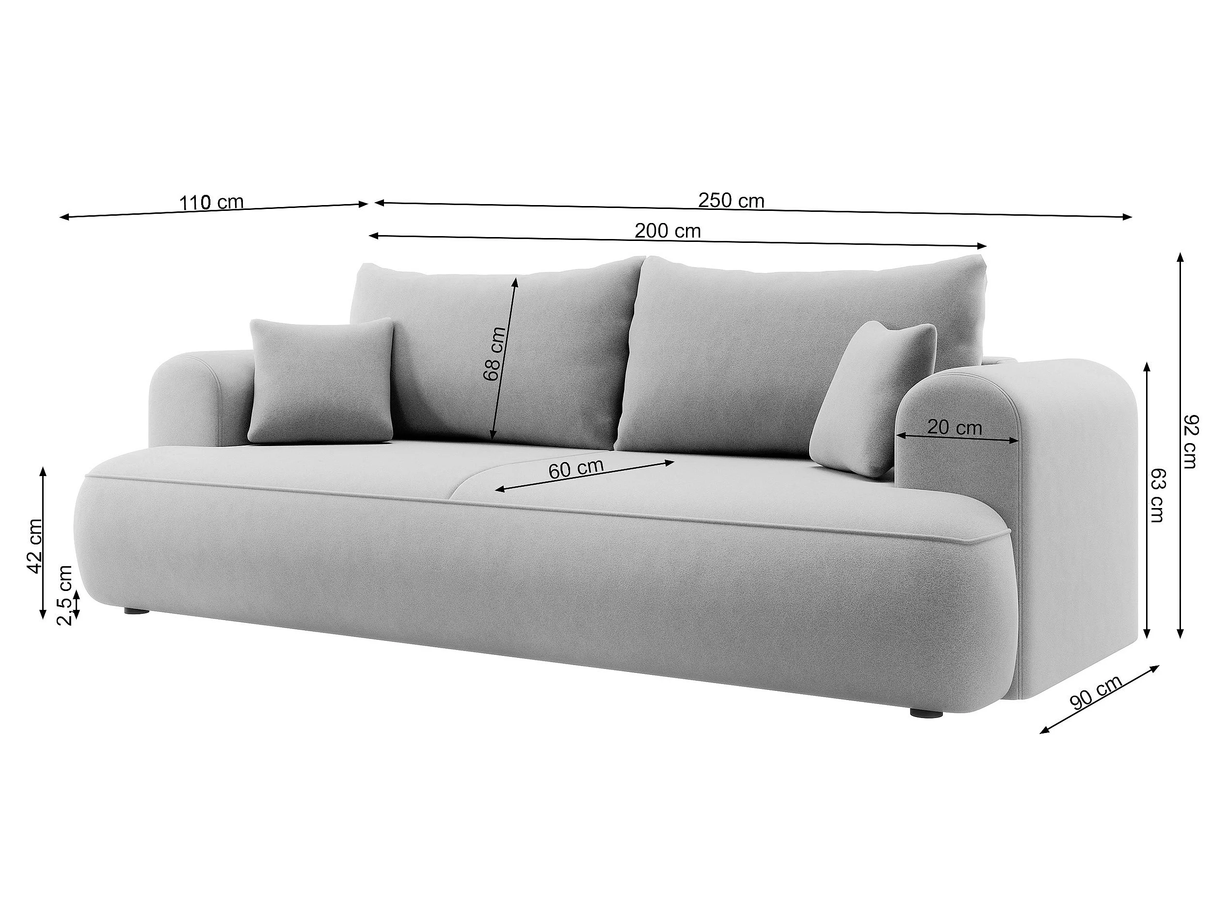 Canapé convertible - 3 places - avec coffre - gris foncé velours - OVO