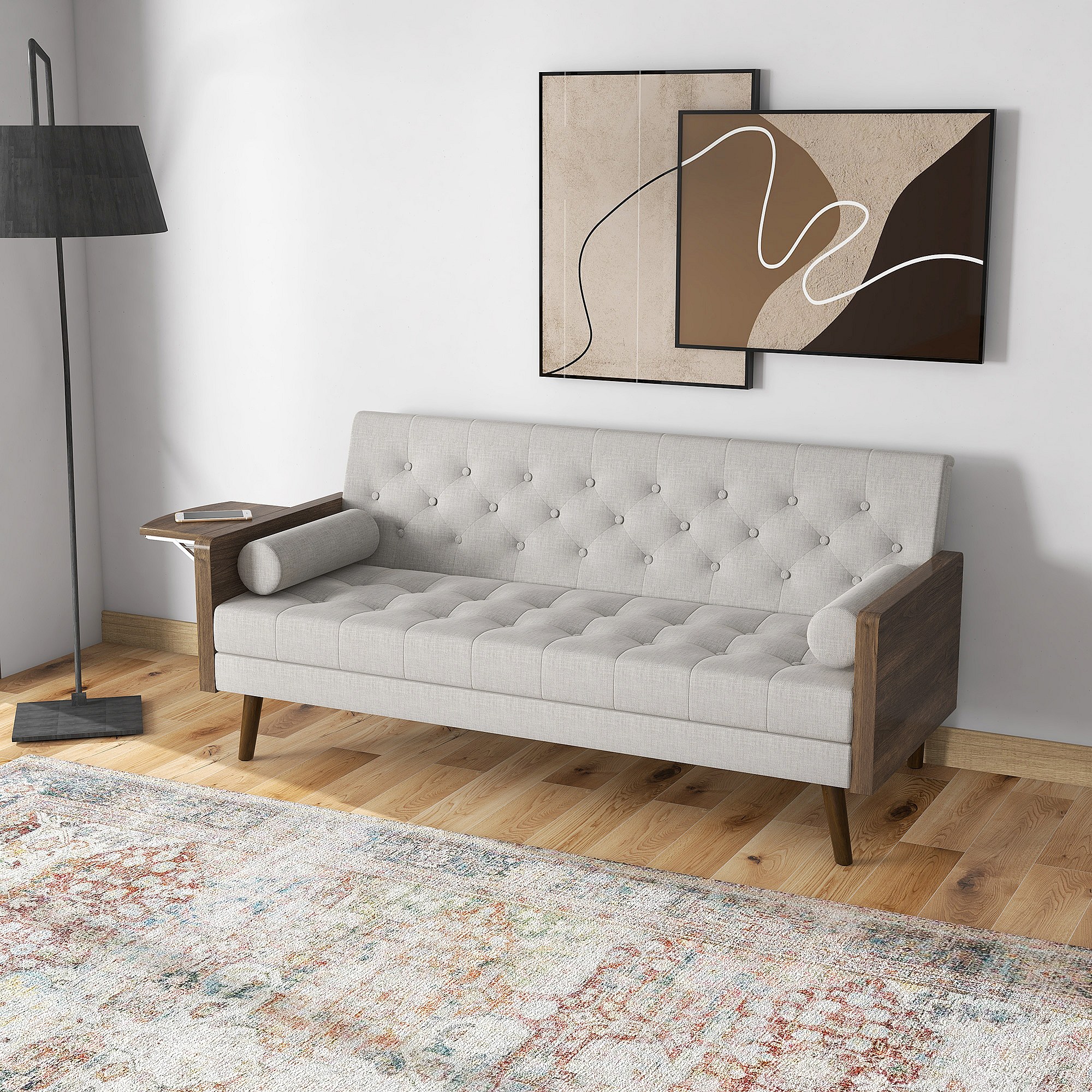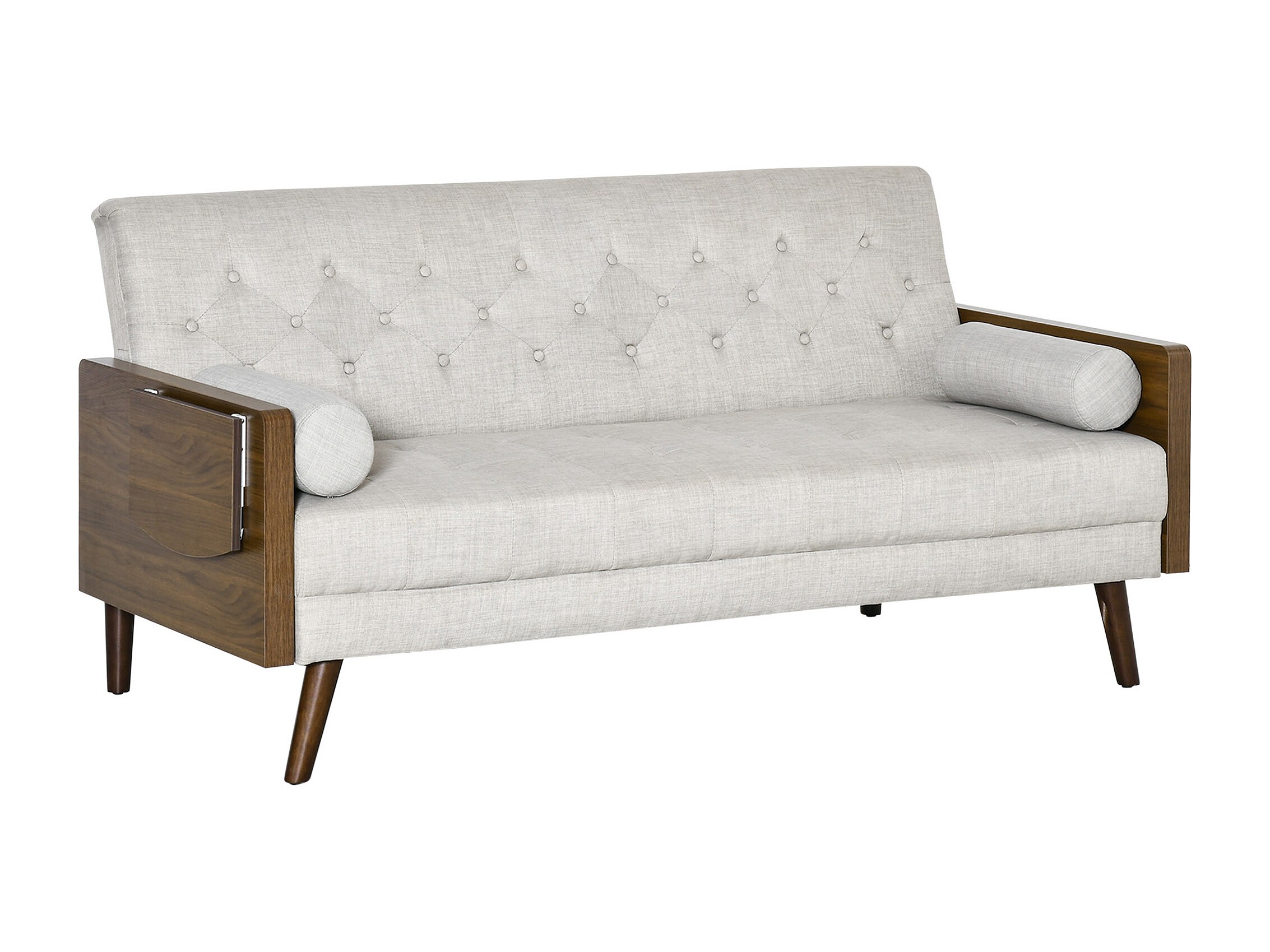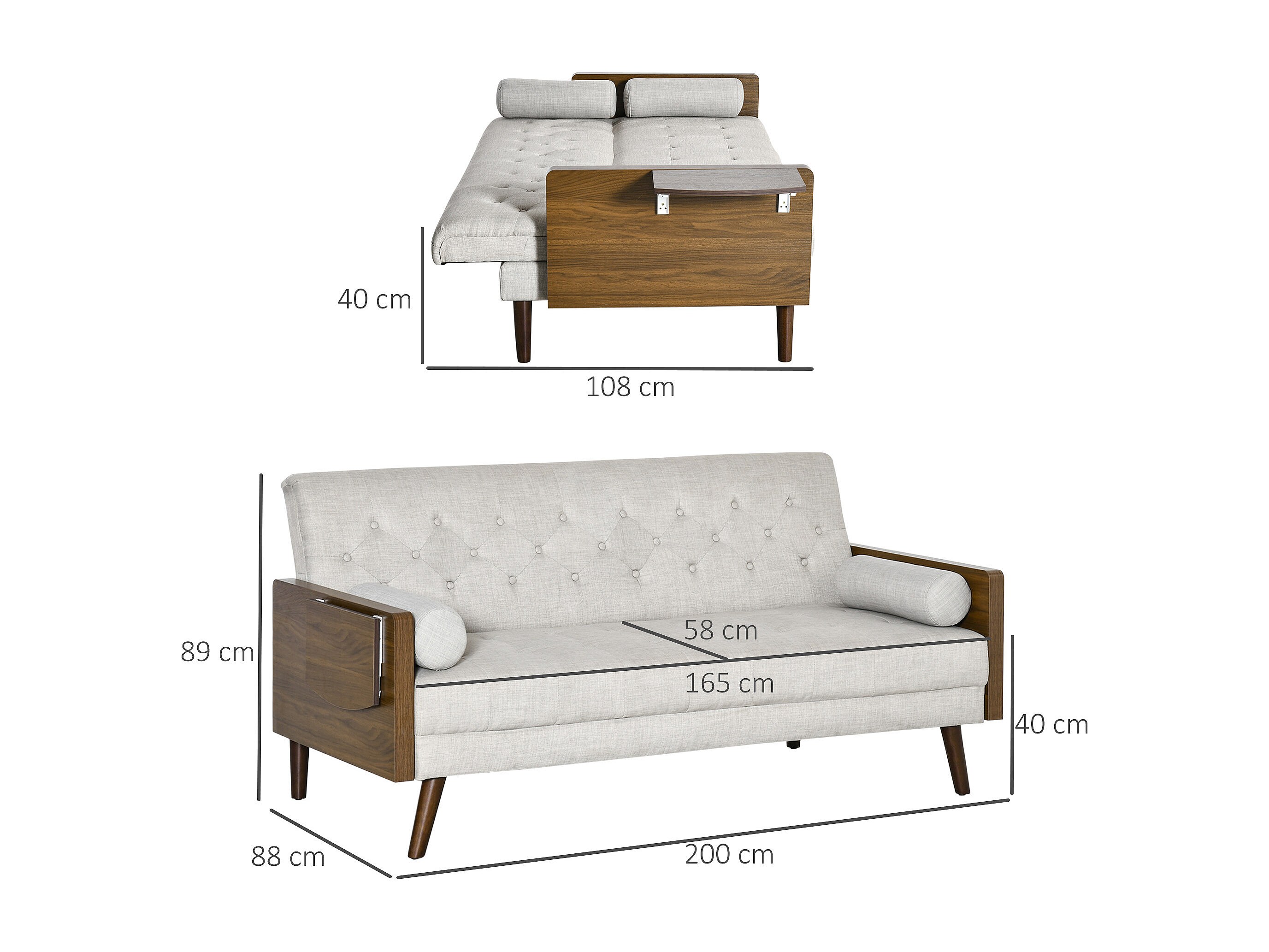 Canapé convertible design scandinave 3 places avec dossier inclinable et tablette rabattable en tissu aspect lin beige