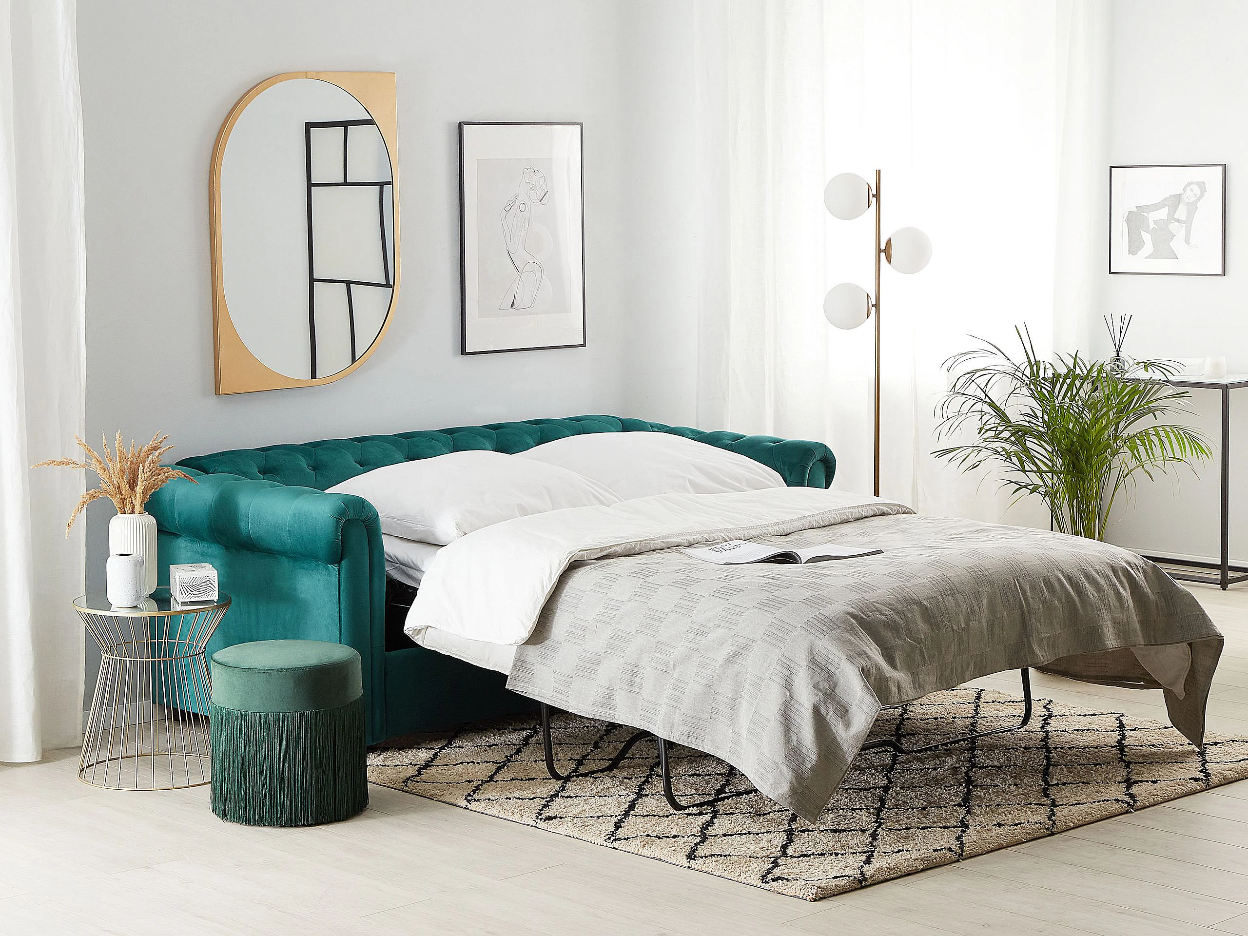 Canapé-lit 3 places CHESTERFIELD Velours Vert émeraude