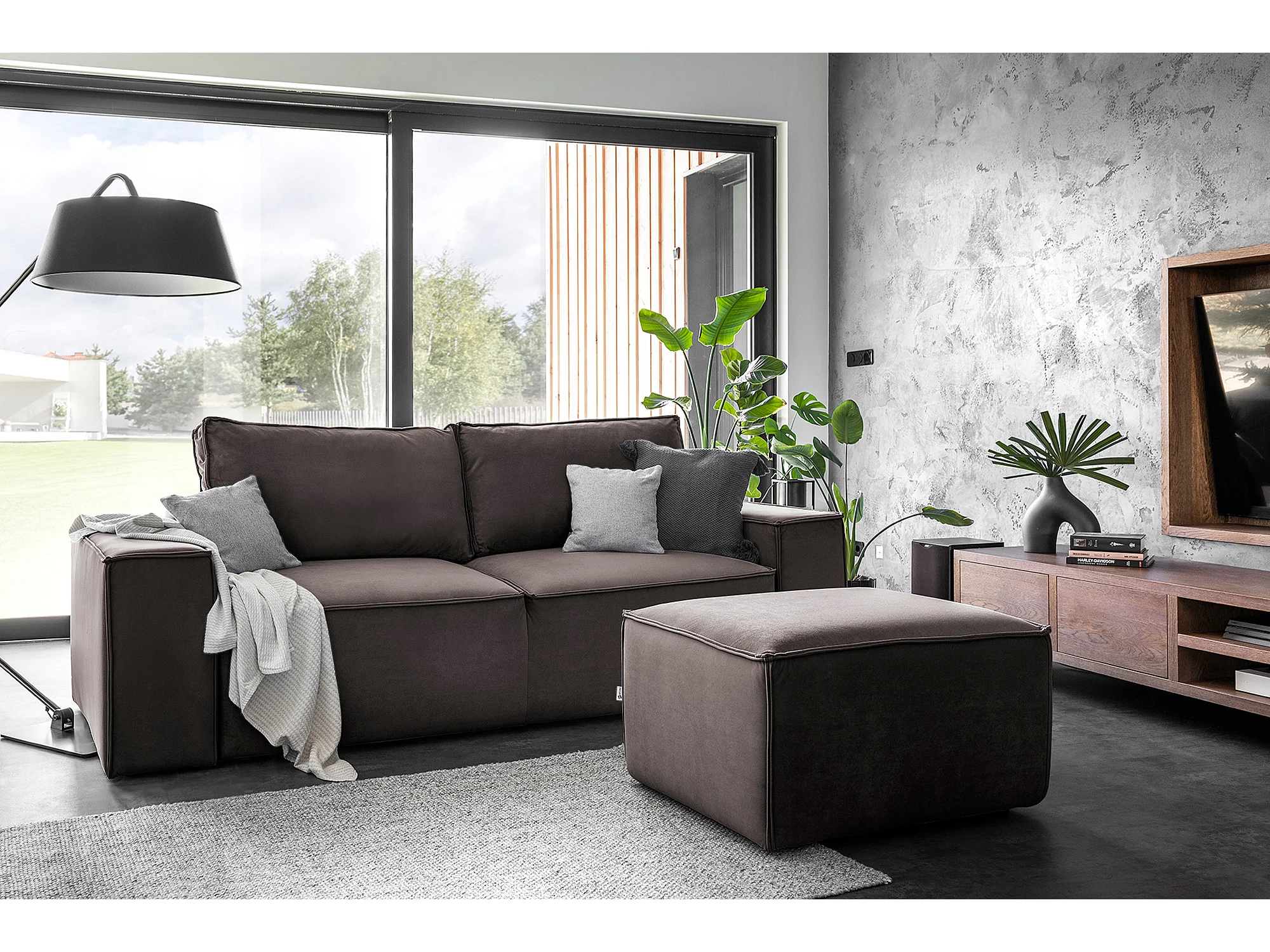 Grand canapé convertible en velours WILACE - Confort moderne et élégant-Marron