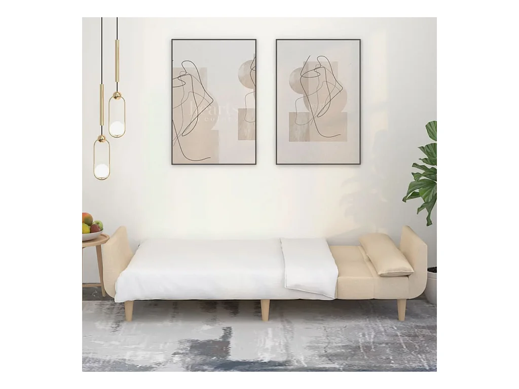 Canapé convertible à 2 places avec deux oreillers crème tissu FR11852