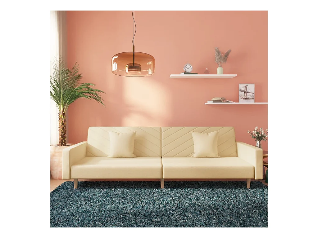 Canapé convertible à 2 places avec deux oreillers crème tissu REO85963