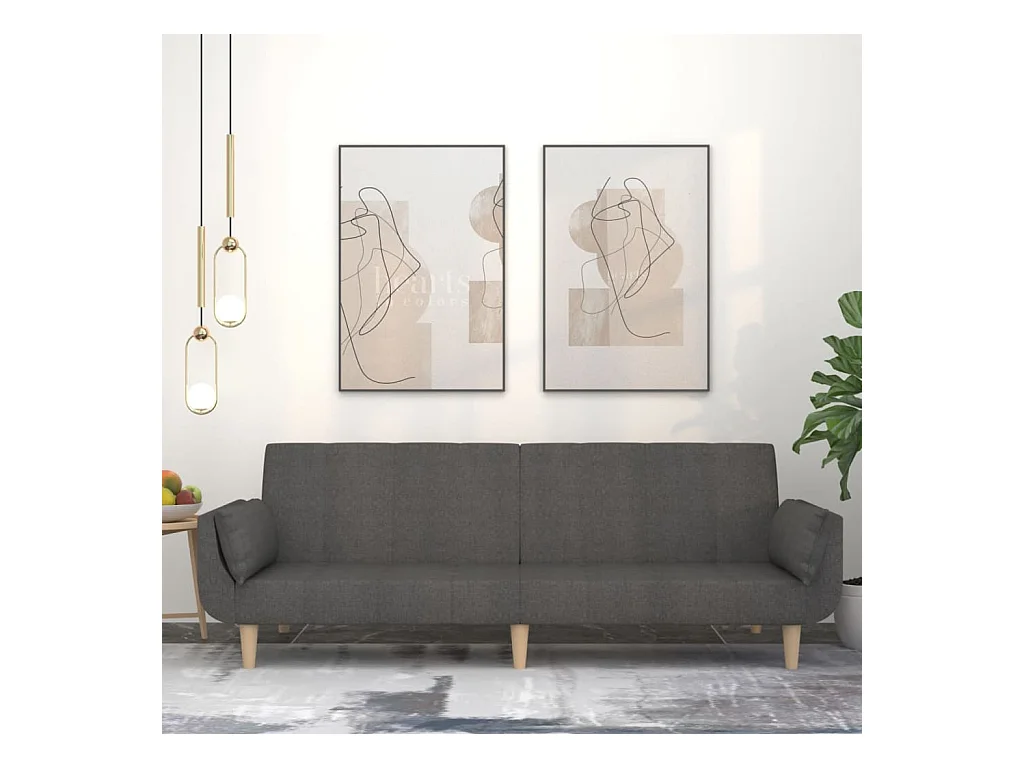 Canapé convertible à 2 places avec deux oreillers Gris foncé Tissu FR69874