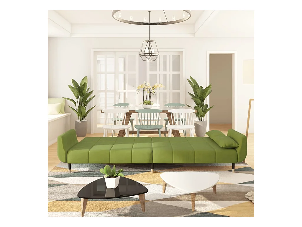 Canapé convertible à 2 places avec deux oreillers Vert clair Velours REO76105