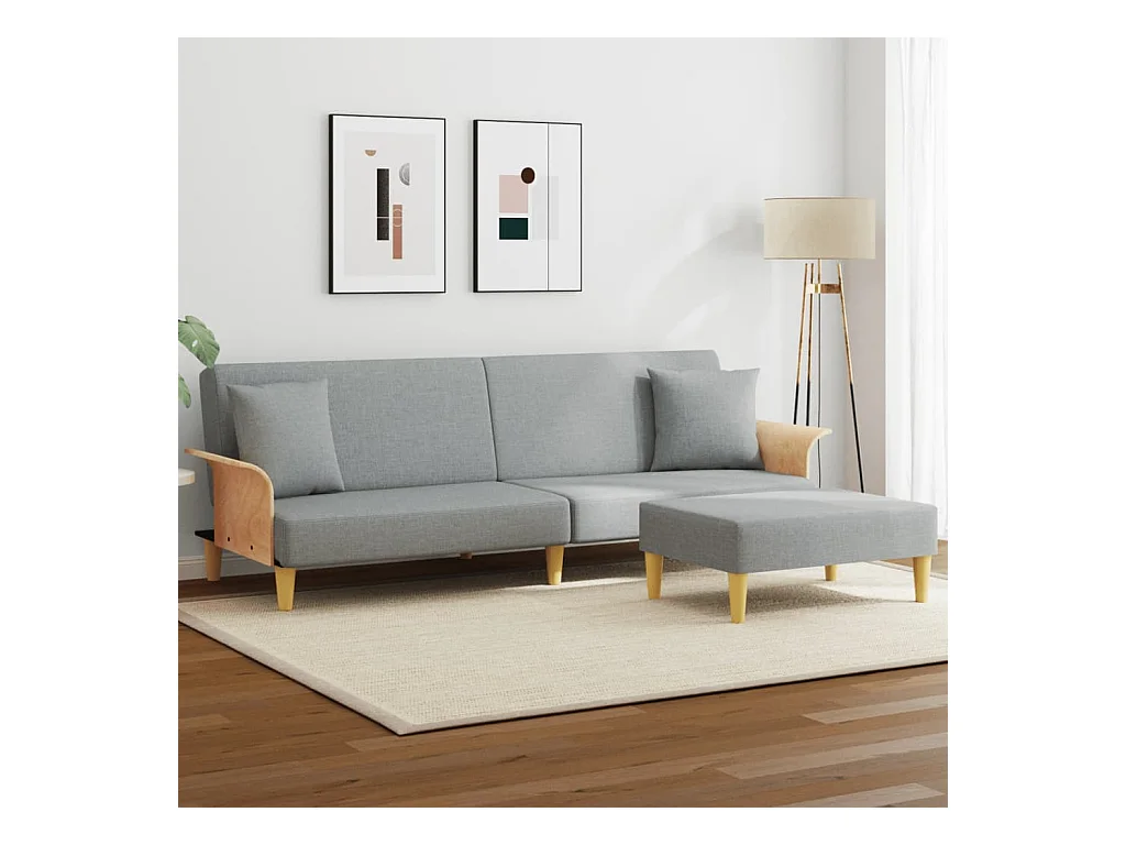 Canapé convertible à 2 places avec repose-pied gris clair tissu FR85047