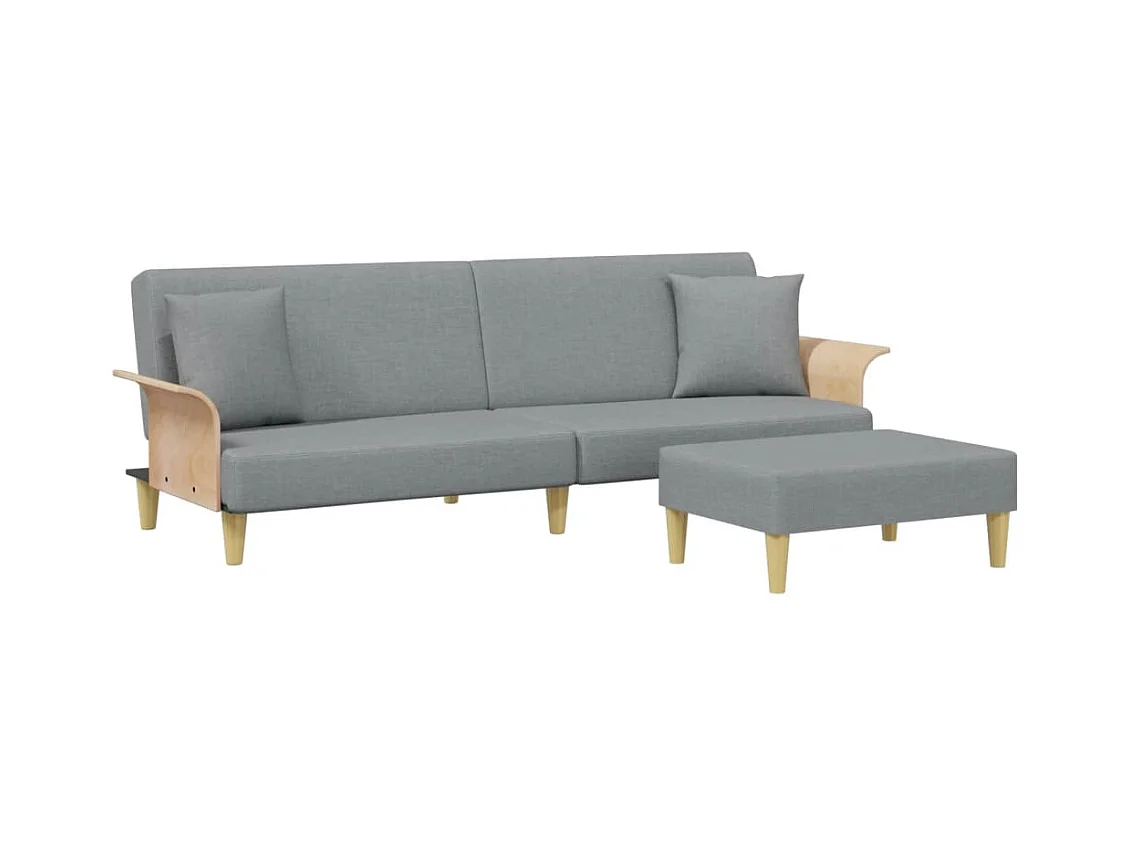 Canapé convertible à 2 places avec oreillers et repose-pied gris clair FR92769