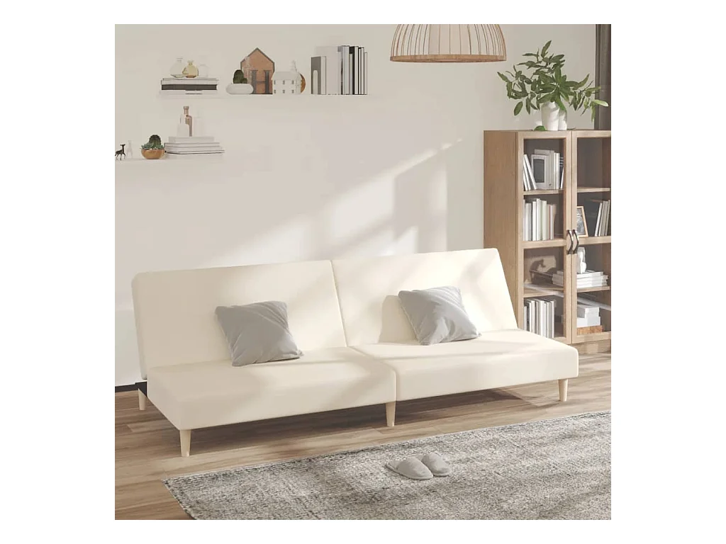 Canapé convertible à 2 places avec deux oreillers crème tissu REO56730
