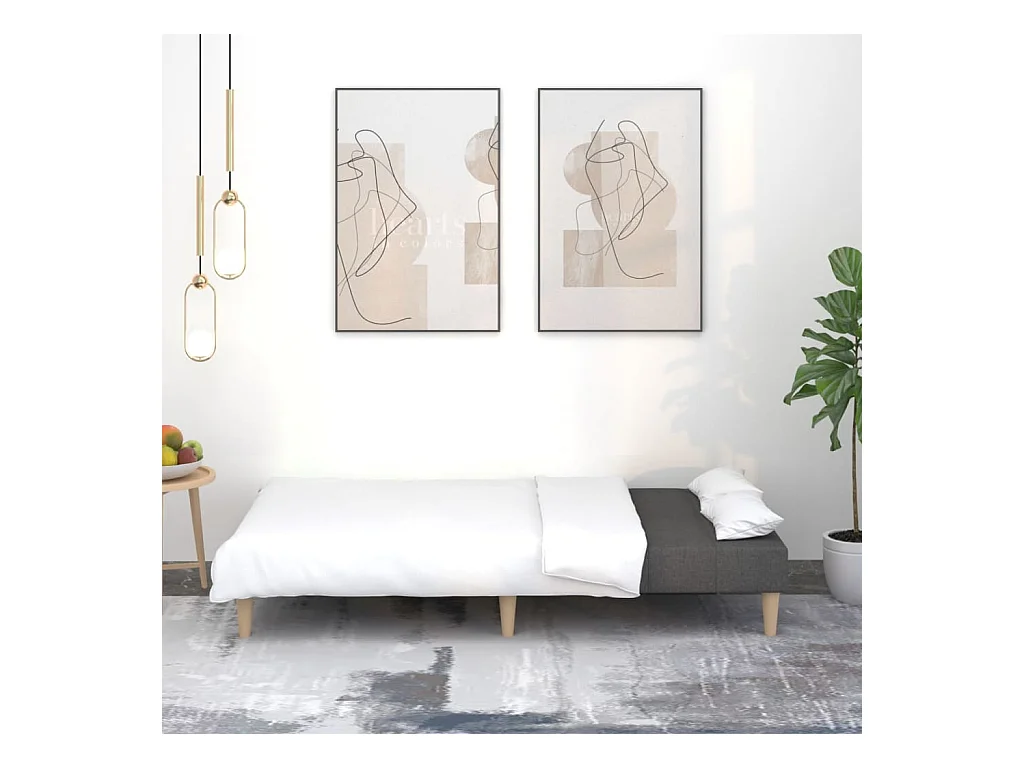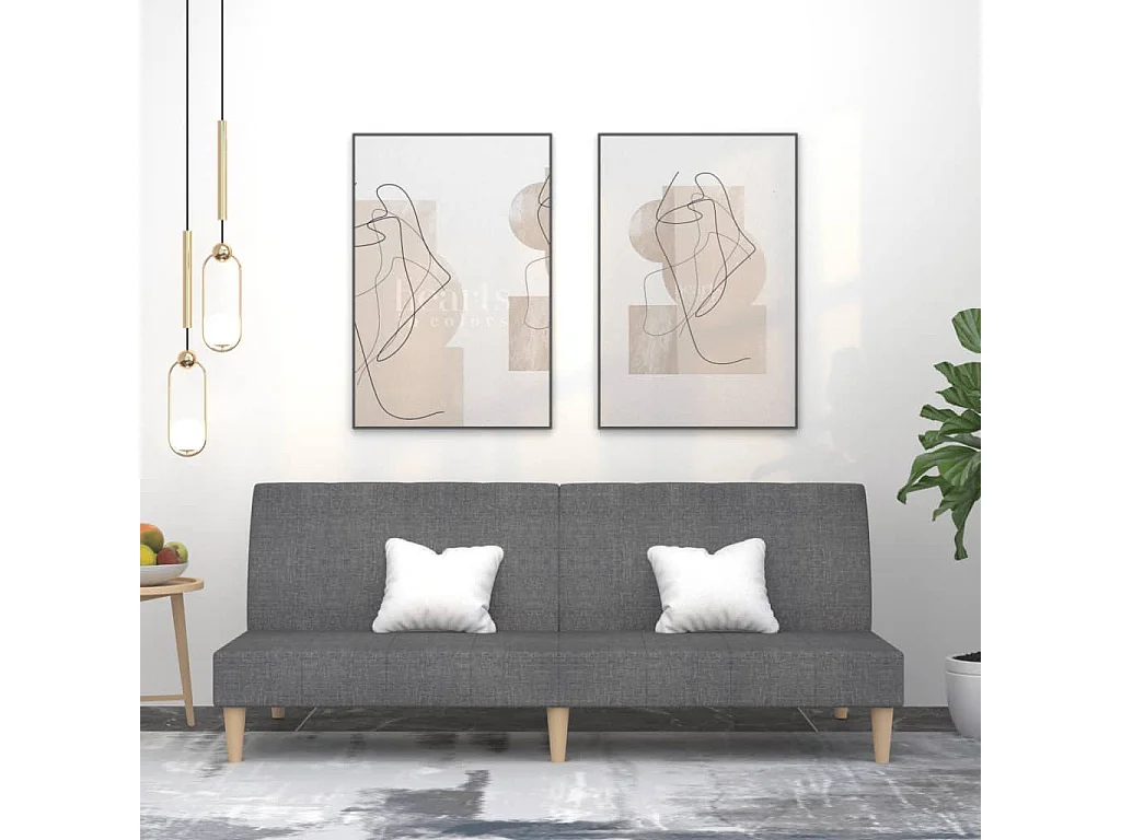 Canapé-lit à 2 places avec deux oreillers gris clair tissu